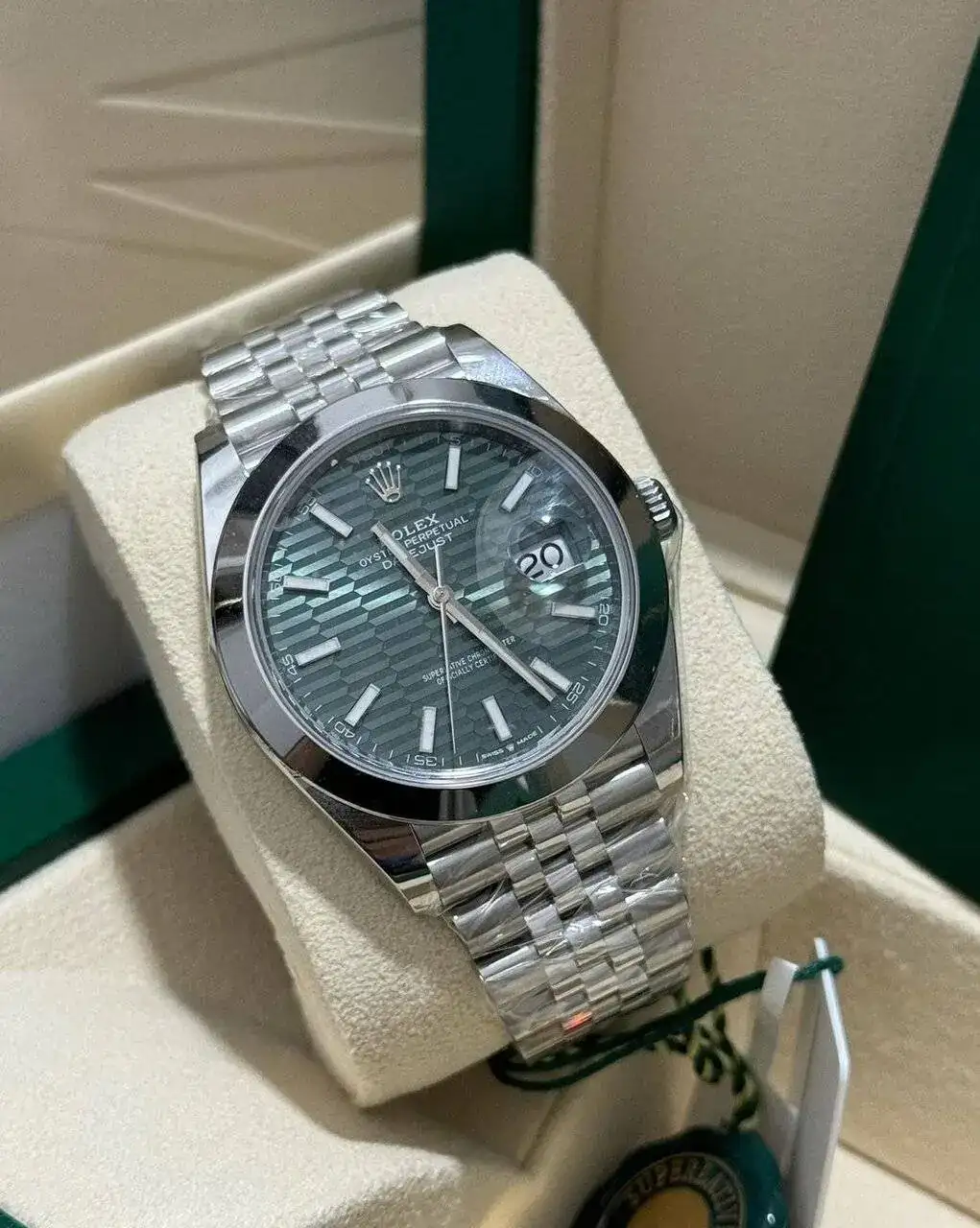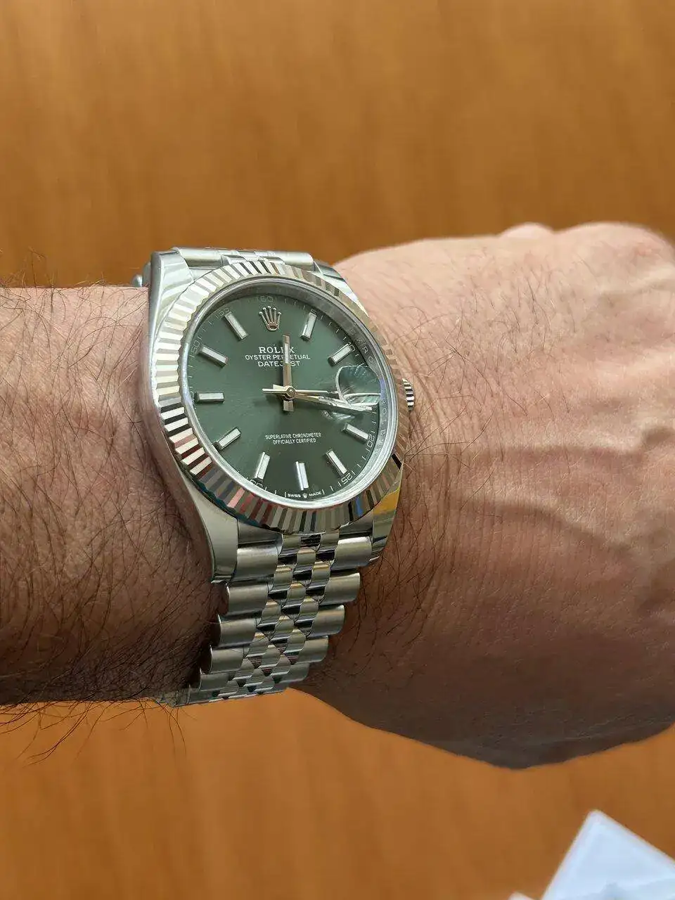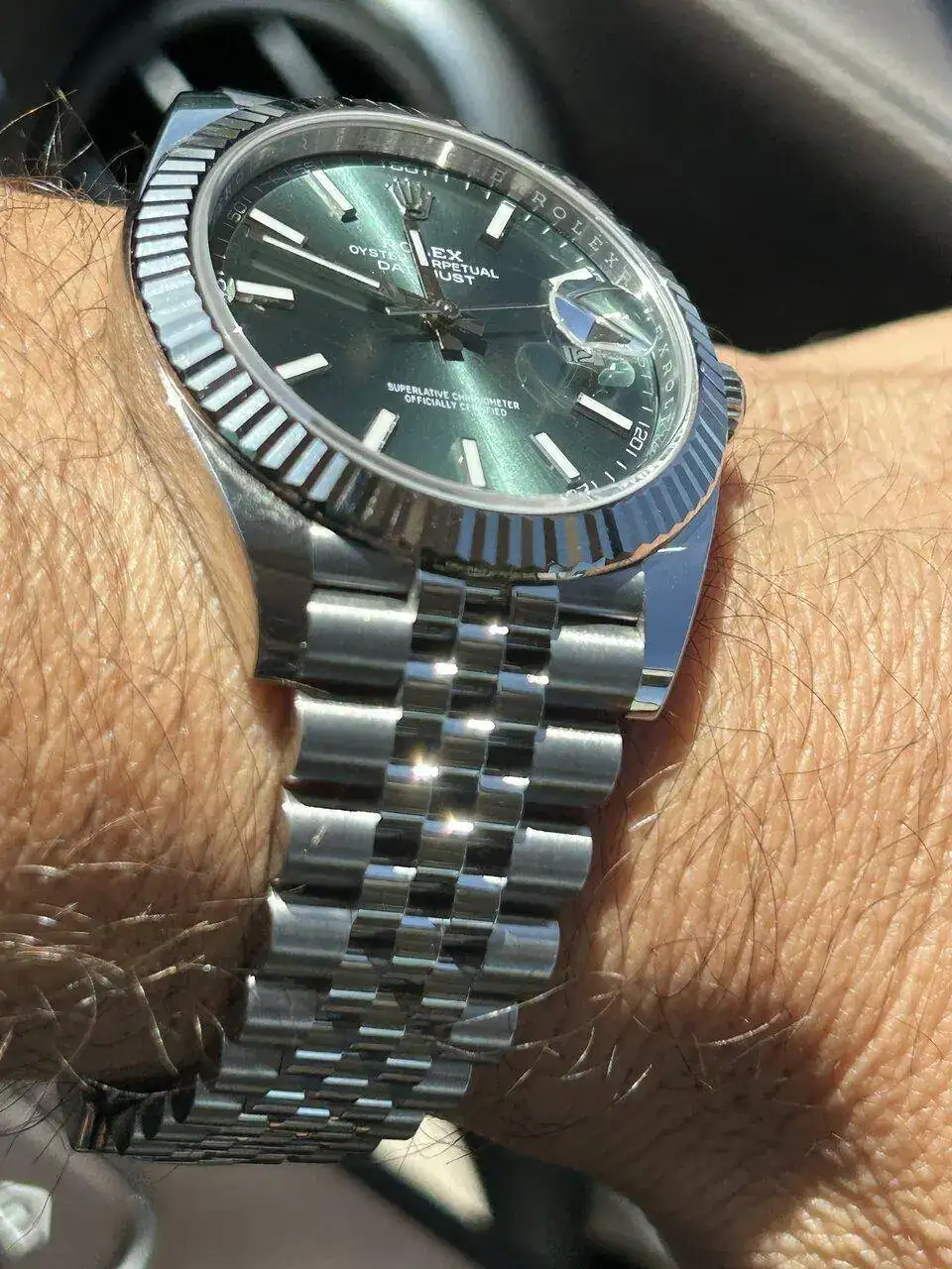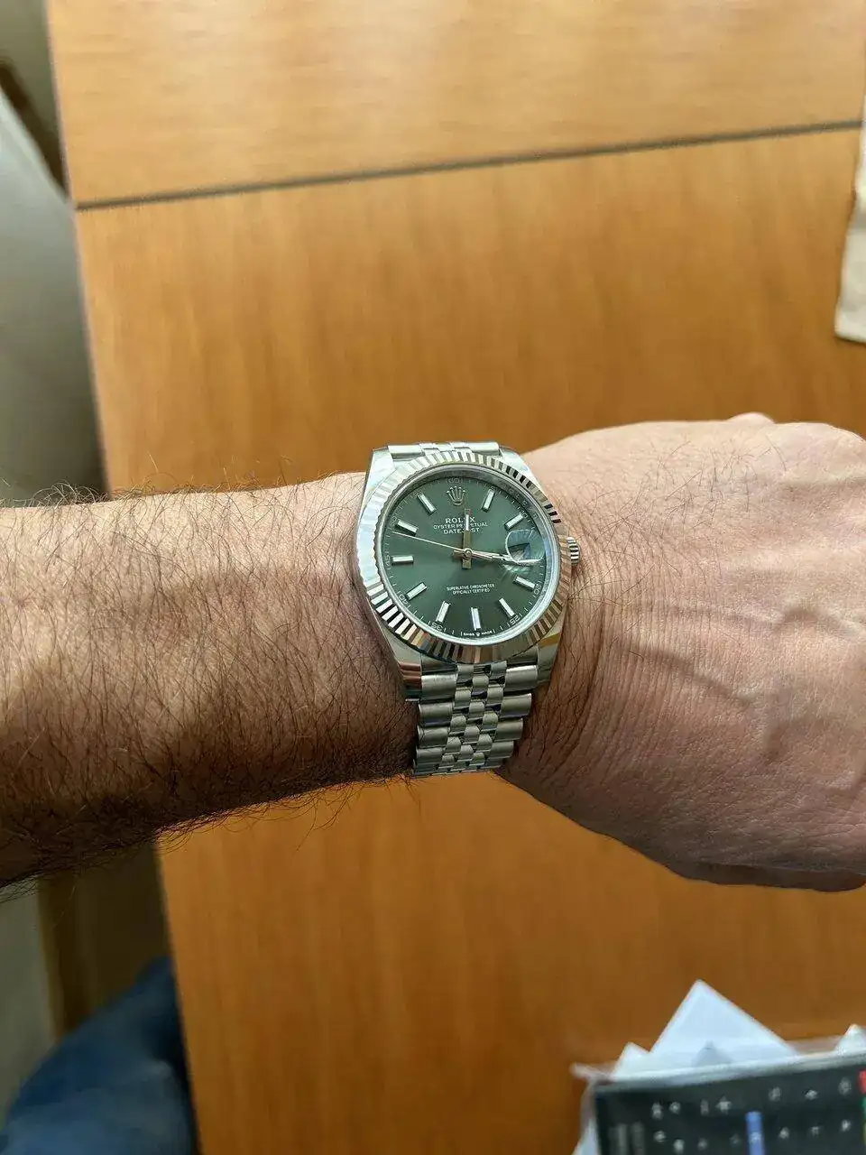 Hoy acabo de recoger brazalete jubile en el CO de mi ciudad después de un mes de espera desde que lo pedí , cuando me trajeron el reloj iba con oyster y tenía el si pero no al llevar bisel estriado así que me decidí por pedir el brazalete jubile,primera impresión muy cómodo, el oyster mi apreciación queda más completo con bisel liso.Dejo unas fotillos .
