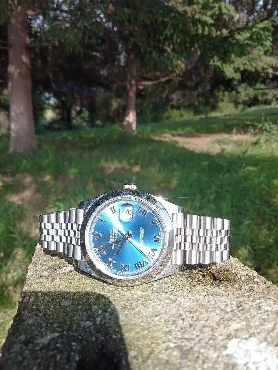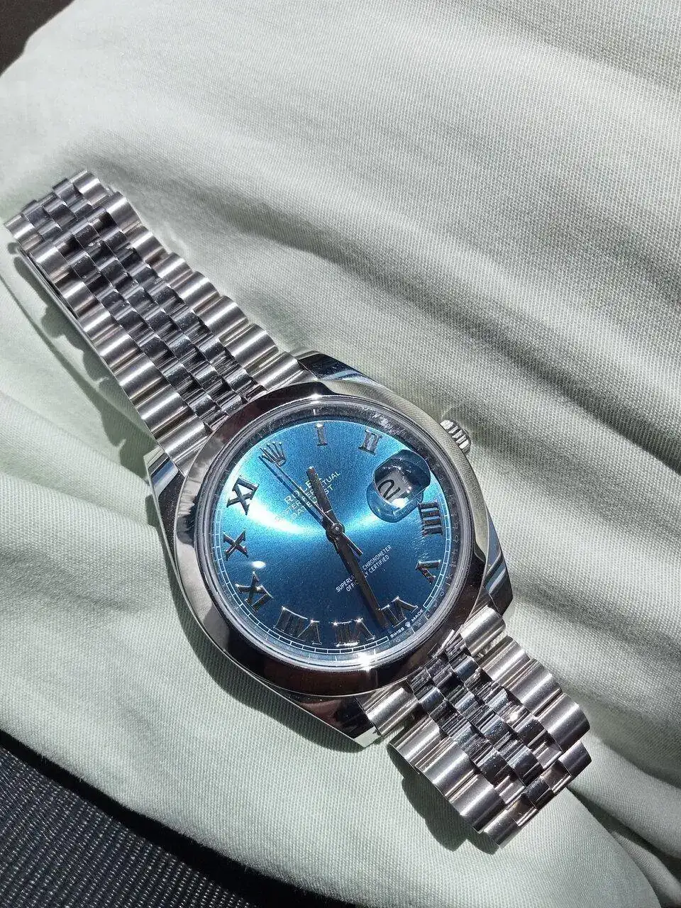 Muy bonito, ese azul al sol, es espectacular.Para mi, en el Datejust: bisel liso con jubilé. Y estriado con Oyster, el azul índices por ejemplo.