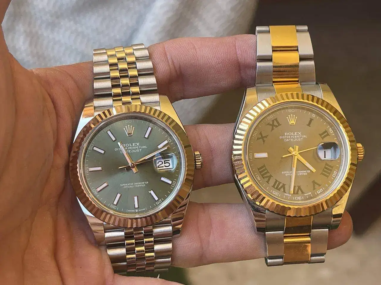 Vaya parejita madre mía,preciososDepende mucho del reloj y la configuración, a mi, por ejemplo el Oyster me parece una locura de brazalete, el del sub con ese cierre ya es sublime, pero por ejemplo en un DJ que es el reloj del que hablas, me encanta el Oyster pero en el mixto, en acero me gusta mucho más el jubilée…de hecho fueron mis dos opciones…