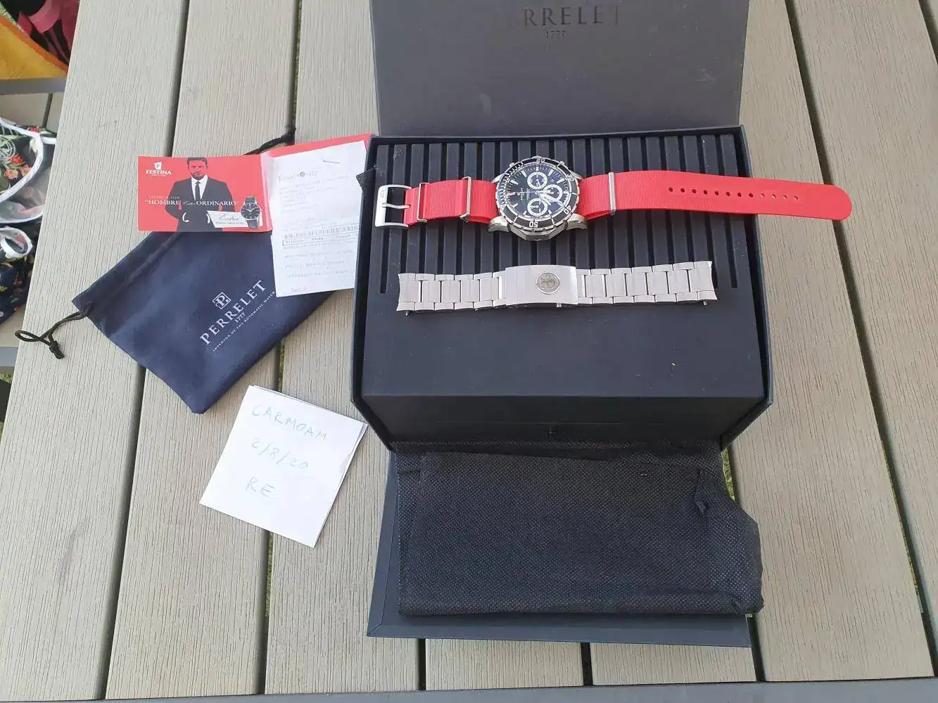 Brazalete: nato de caucho bonetto, armis de Acero y correa extra de Canvas Perrelet
