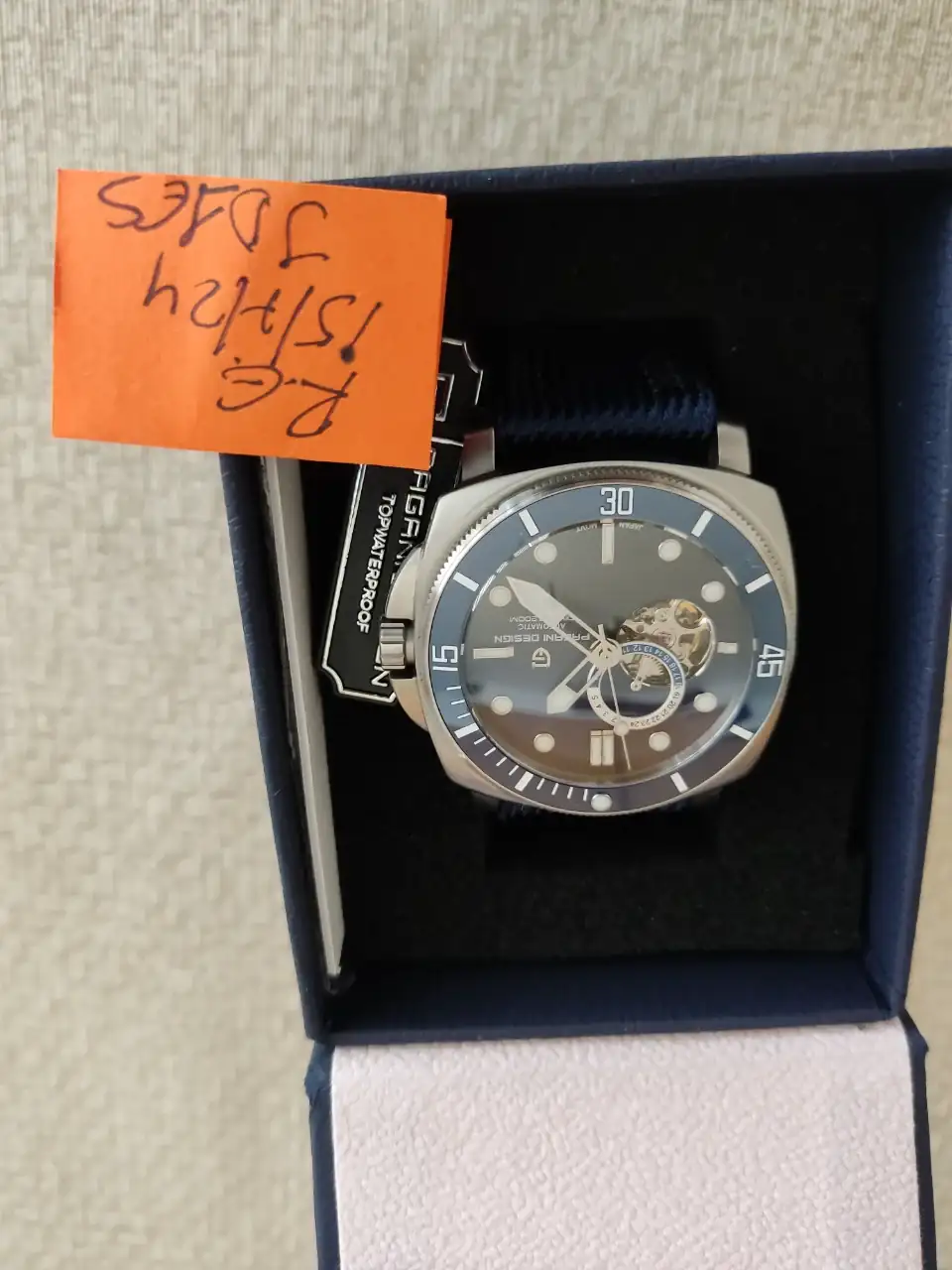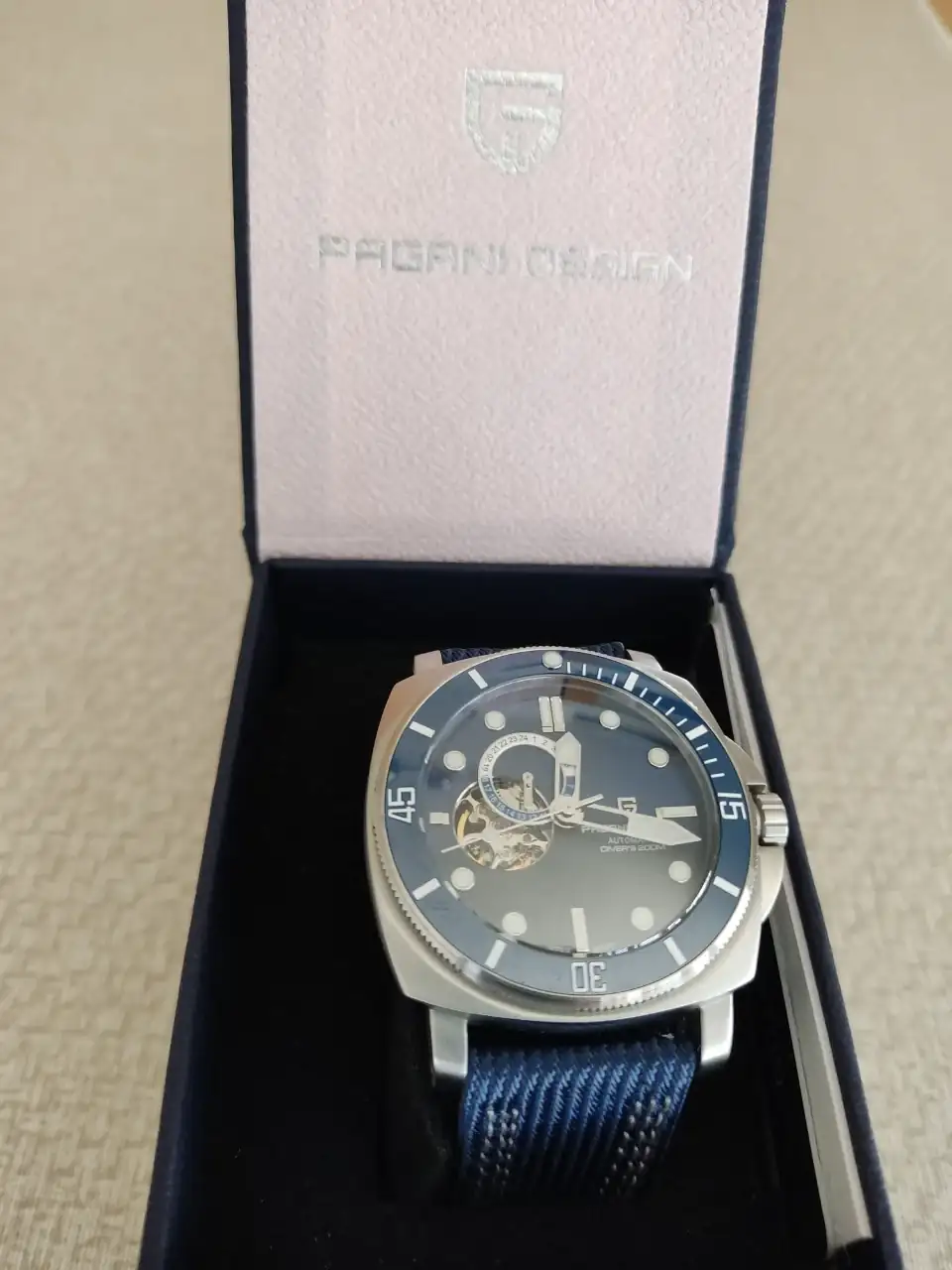 Vendo sin uso este Pagani Design a estrenar. Lleva cristal de zafiro, bisel cerámico, fondo visto y maquinaria NH39 automática. Está nuevo. Comprado este año. Mide 43mm. Lleva papeles pero sin sellar. Precio 63€ y envío a combinar.
