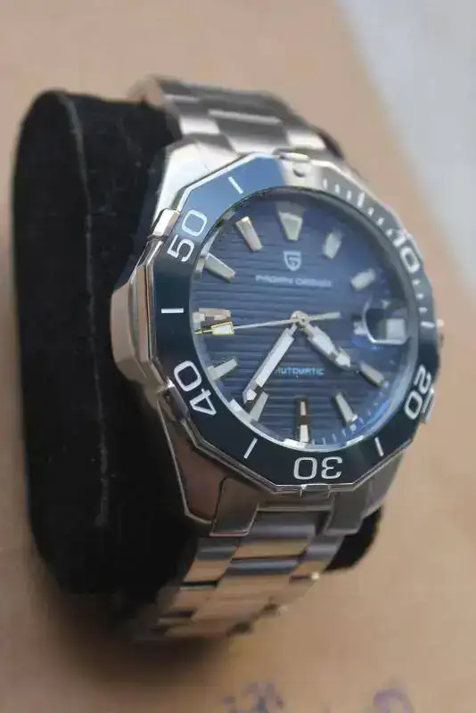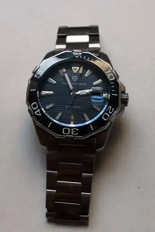 No es un diseño original, pero por ese precio uno tiene un reloj automático, con remonte manual, bisel cerámico y un brazalete de quitar el hipo.