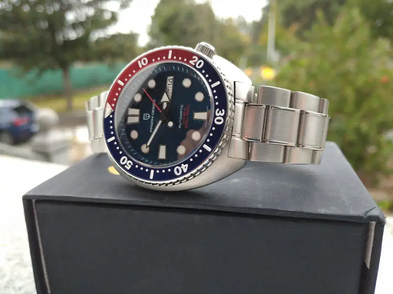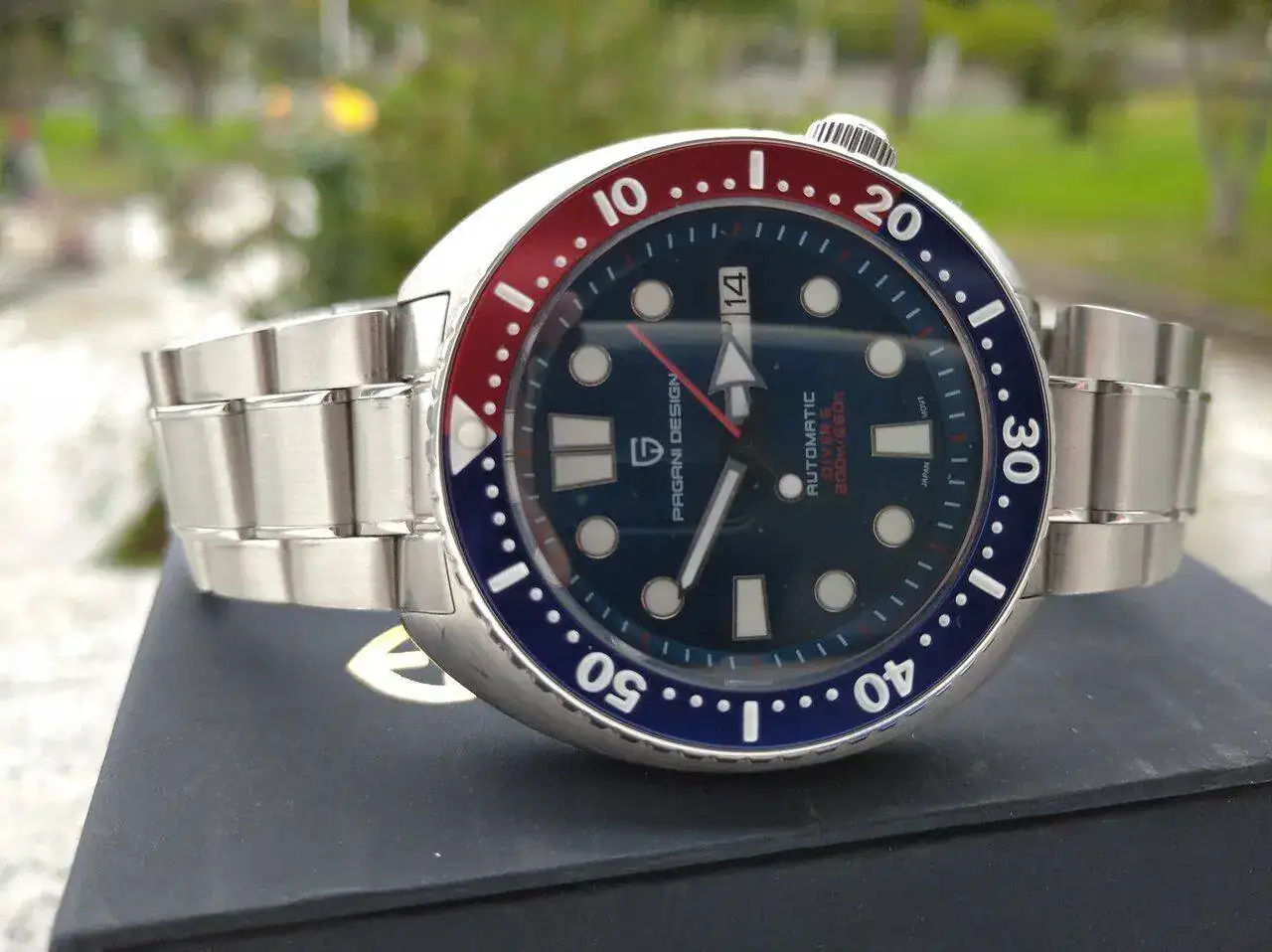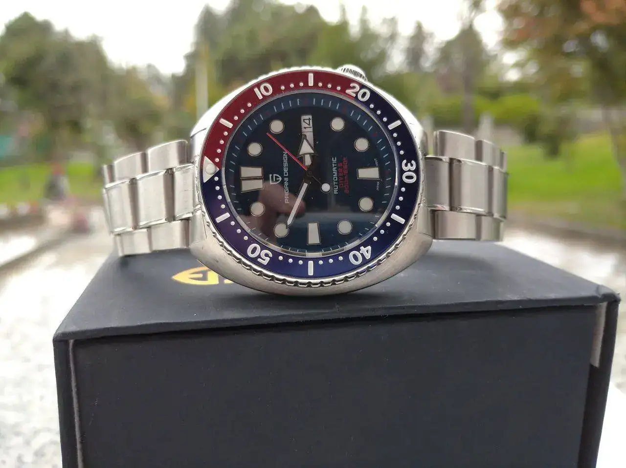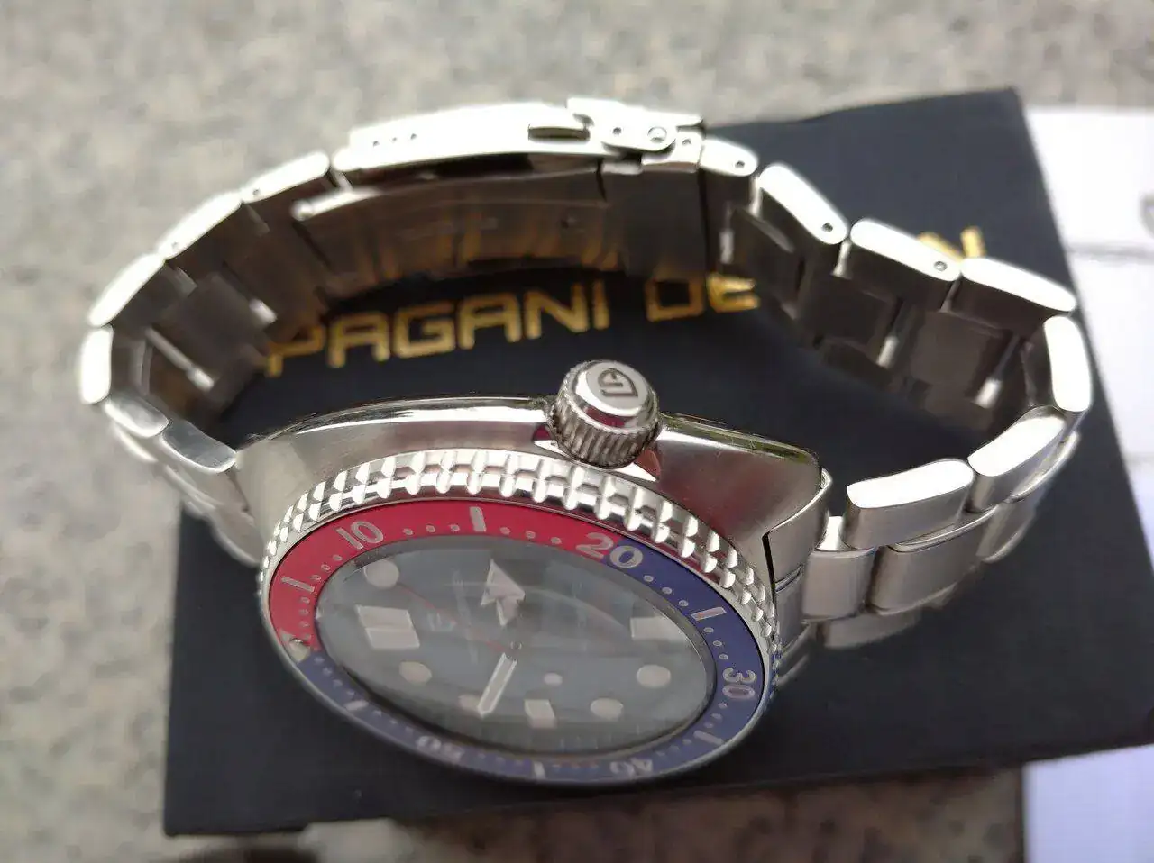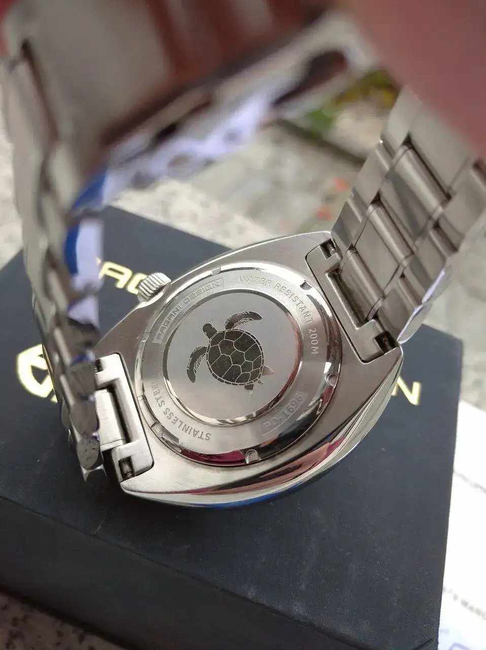 Bisel cerámico, cristal de zafiro súper grueso, armis macizo muy bien construido. La resistencia al agua de 200 m.