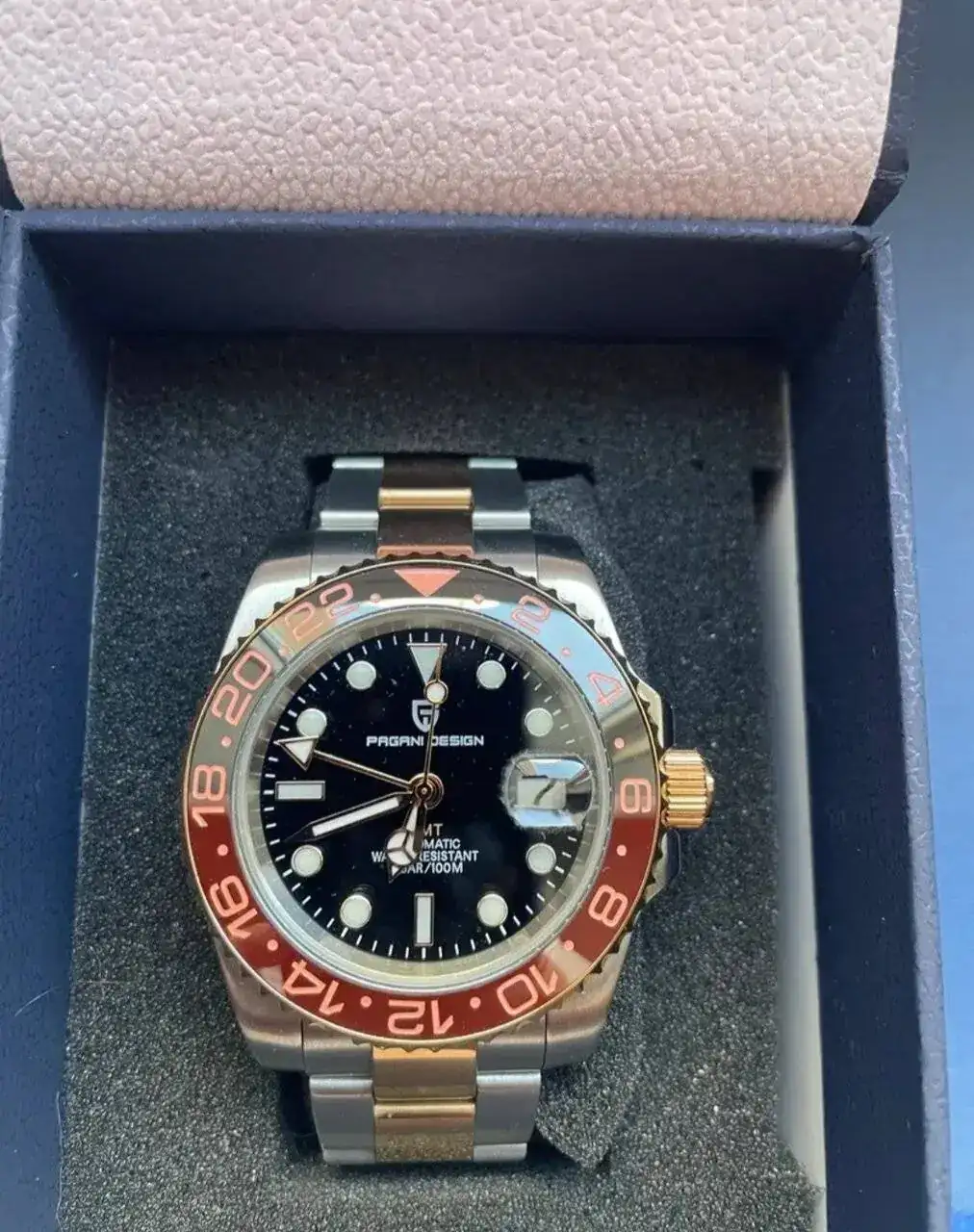 Buenas tardes, saco a venta este bonito Pagani Root Beer comprado a un excelente compañero de foro. El reloj está en un estado muy bueno, señales de un uso normal en oficina. Tiene los típicos pelillos inevitables en cierre y armis y apenas ninguno en las zonas pulidas. Bisel cerámico cristal impolutos. El reloj es de Julio del 23, apenas tiene 8 meses.