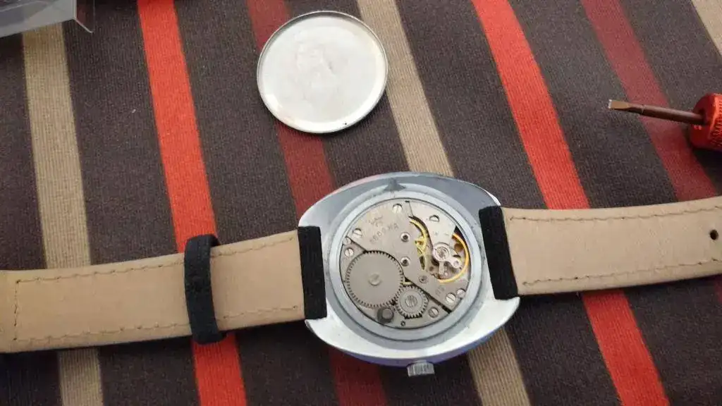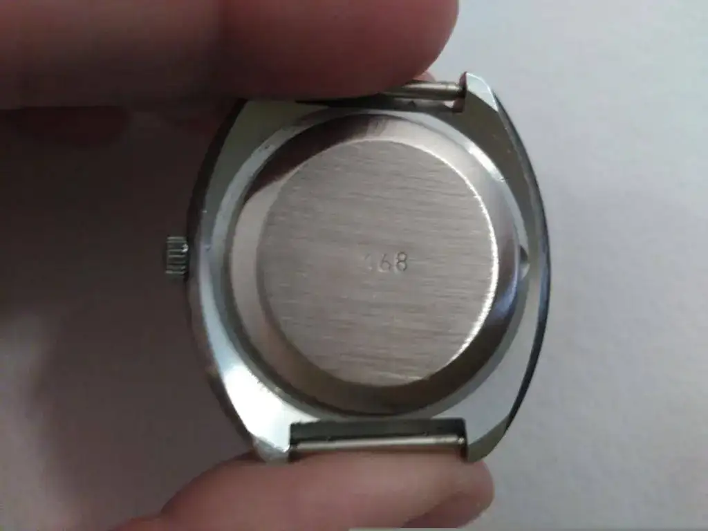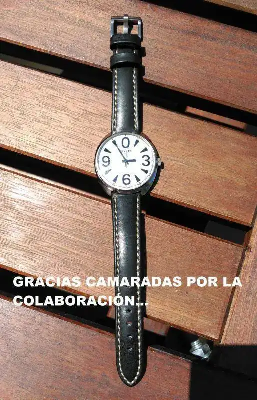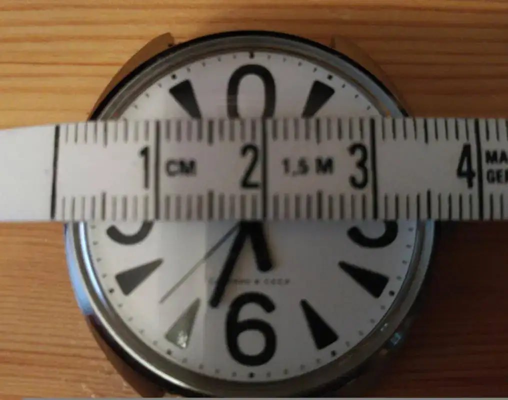 Se de buena tinta que es original ya que me he estudiado a conciencia la información que corre por el foro y por media internet (ver las últimas fotos). Los número en relieve y la inscripción Hecho en la antigua CCCP en cirílico son pruebas claras. Pero tengo mis dudas si es un little (37 mm) o un big (40mm) ya que el medirlo con el cristal original (un tocho de plexiglass) es un lío. Y eso que he utilizado una cinta métrica flexible plástica. Sí, soy un novato. Según cómo se mire da impresión de una medida o de quedarse corto. Según el blog del señor gutierrez el Big mide 39x41 mm...