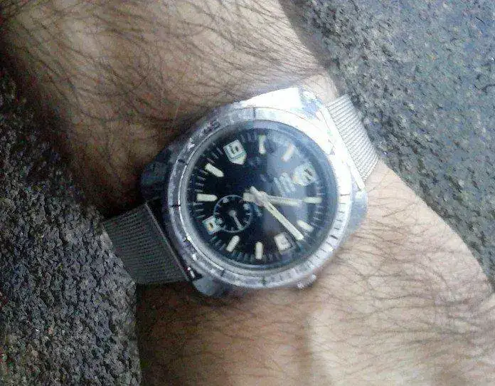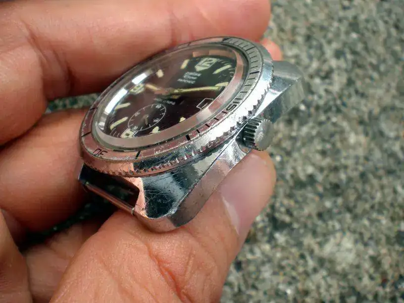 Vendo este bonito reloj vintage por no usarlo. Marcha perfectamente. Carga manual y corona no roscada. Bisel con insert de aluminio. Caja y bisel de latón cromados (creo). Las fotos transmiten muy bien su estado, si bien en persona gana presencia, como suele pasar. Acepto ofertas, aunque no busco cambios.