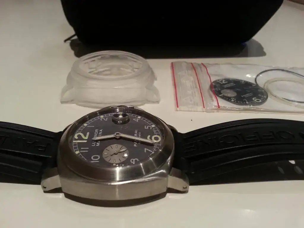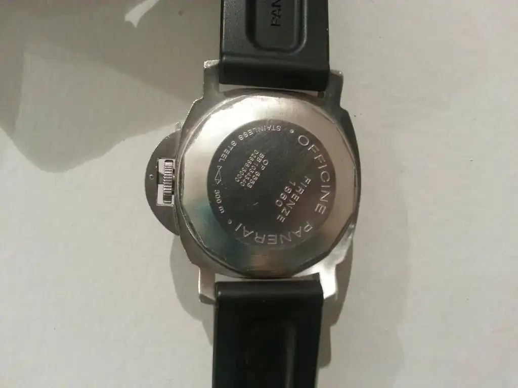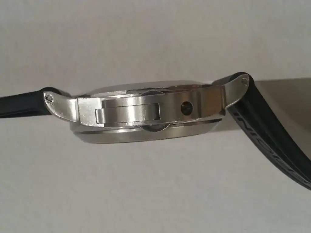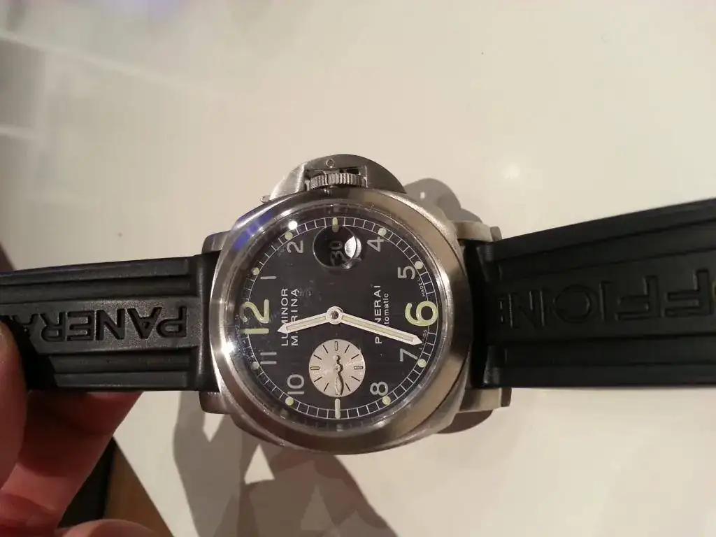 Pongo para cambio este Pam 086. El reloj ha tenido su uso y tiene sus marcas. A destacar algún toque en la caja y en el protector de la corona. También tiene una marquita en el interior de la esfera. De marcha va perfectamente y no requiere paso por el SAT a no ser que se quiera pulir lo que he dicho anteriormente.