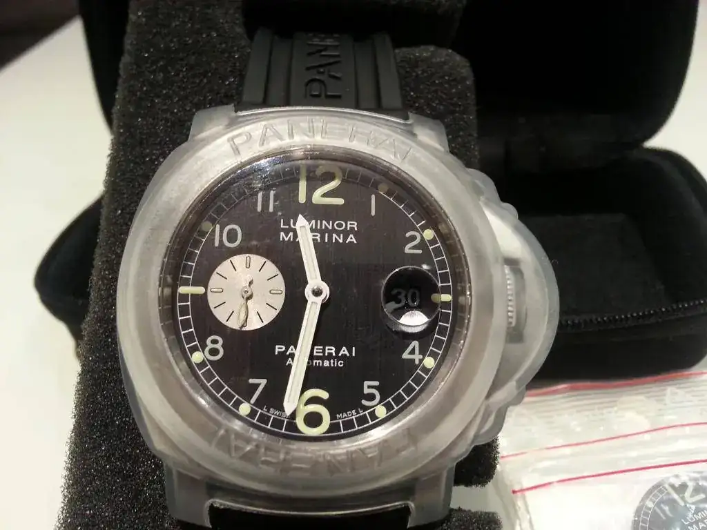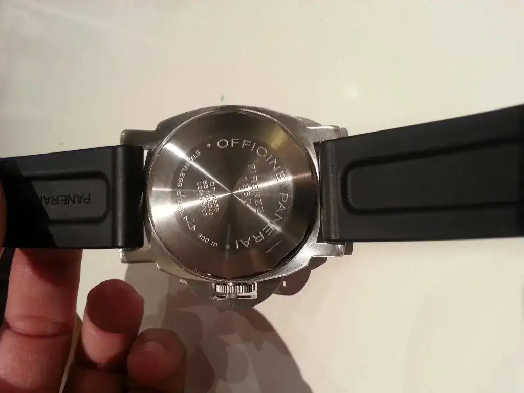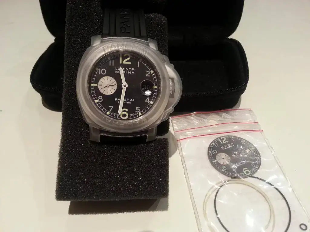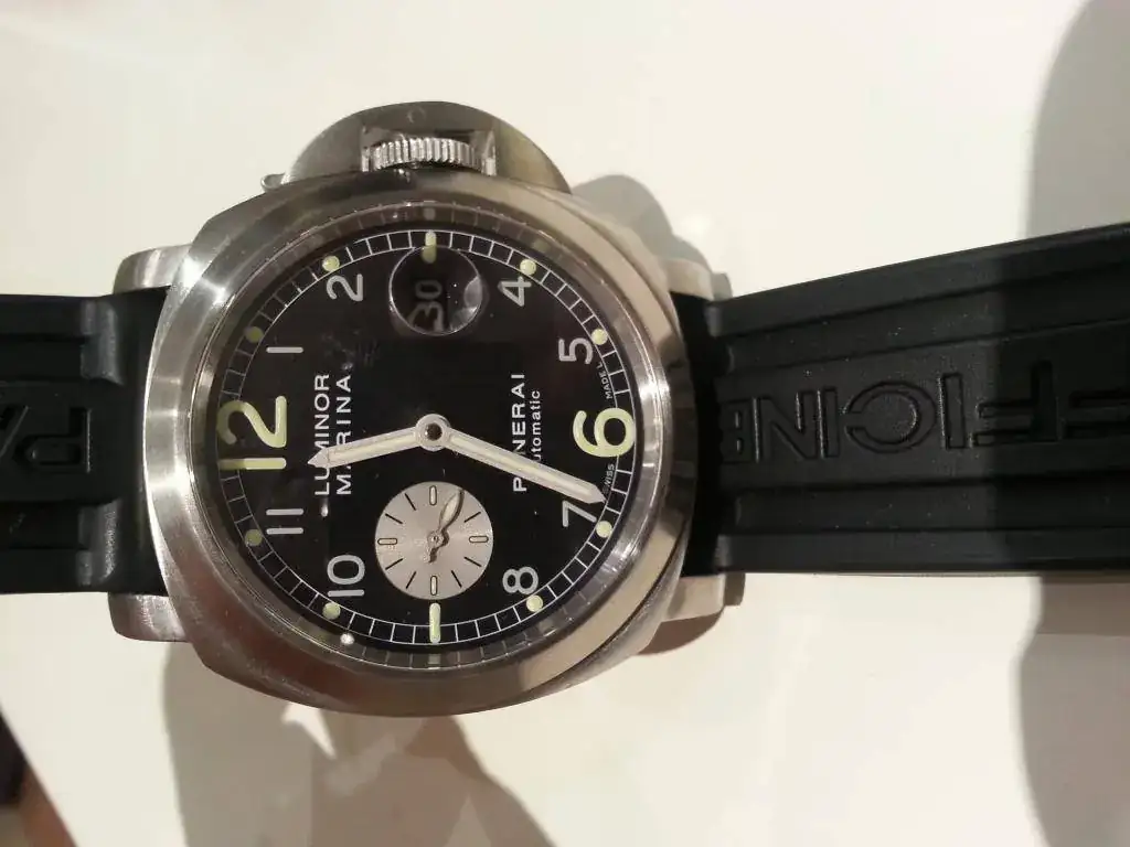 Pongo para cambio este Pam 086. El reloj ha tenido su uso y tiene sus marcas. A destacar algún toque en la caja y en el protector de la corona. También tiene una marquita en el interior de la esfera. De marcha va perfectamente y no requiere paso por el SAT a no ser que se quiera pulir lo que he dicho anteriormente.