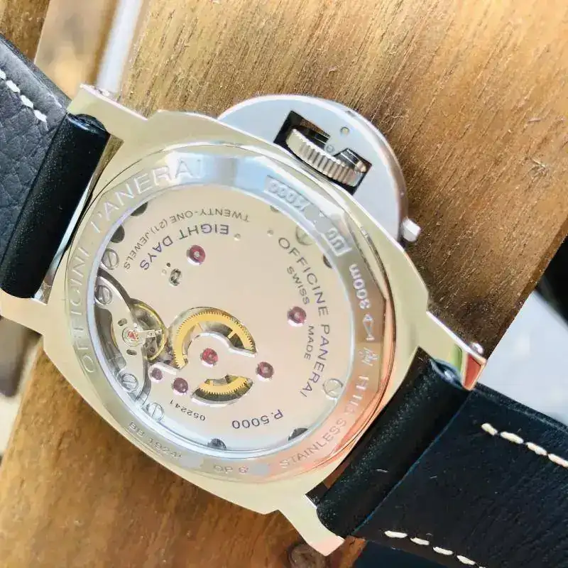 Sensaciones: Muy cómodo de llevar, bastante más que la caja 1950 de mi anterior PAM, casi diría que se pega a la muñeca, no cabecea en absoluto. El remonte manual es una delicia que estoy experimentando cada domingo con un café. El calibre 8 días es de una utilidad desconocida por mí, casi parece que el reloj va a pilas...de una cosa así ya no te bajas. Estéticamente es de una presencia impecable, la quietud del dial y la tipografía de los números de Panerai junto al guardacorona, hipnotizan.