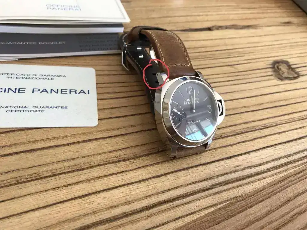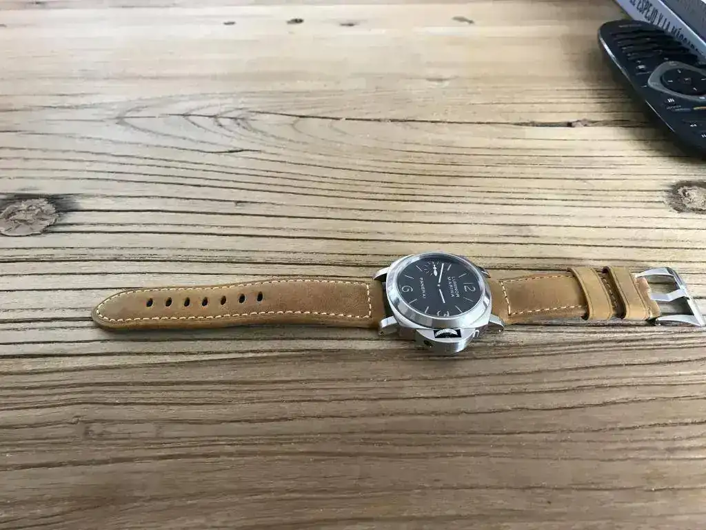 Lleva montada la correa de las fotos que es una asso Panerai de becerro usada pero en buen estado con bucle original Pam .