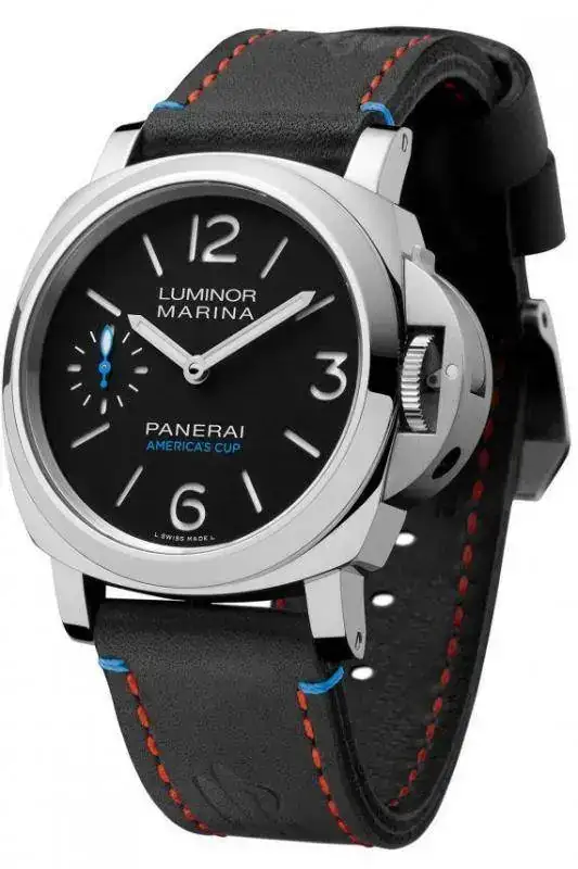 Completando la trilogía de Oracle Team USA, el Panerai Luminor Marina Oracle Team USA 8 Días Acciaio - 44mm cuenta con ocho días de reserva de marcha, equipado con el calibre P.5000 de P4000 manual de Panerai y limitado a sólo 200 piezas. La caja de acero inoxidable de 44 mm es resistente al agua hasta 300 metros y cuenta con el protector de corona patentado. El dial "sandwich" negro mate recibe un segundero azul en el subdial a las 9. La correa de cuero negro tiene la costura de color rojo y azul y el logo de la America's Cup grabado en caliente, y el fondo de la caja está grabado con una representación del yate del equipo. El reloj (Ref. PAM00724) tiene un precio de venta de 6.900 euros.