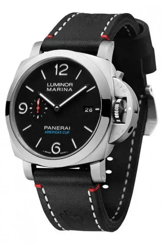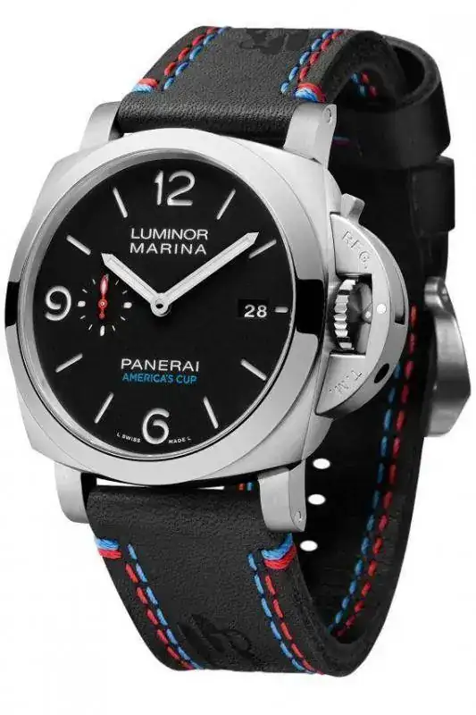 El Panerai Luminor Marina 1950 América de la Copa 3 Días Automático Acciaio - 44 mm es el reloj oficial del evento en sí, que se celebrará a finales de este año en las Bermudas. Su caja de acero inoxidable mide 44 mm de diámetro y, al igual que todos los modelos Luminor, cuenta con el dispositivo patentado de palanca de protección de la corona de Panerai. El reloj, que es resistente al agua a un respetable 300 metros, tiene un bisel pulido y un negro "sandwich" dial. La fecha aparece a las 3 y los segundos en marcha en un subdial a las 9. La "America's Cup" se imprime en azul por encima de la posición de las 6 en punto, y la correa de cuero negro, sin tratar, con el logo de la Copa América estampado en ambos lados, está cosida con hilo rojo y azul. En su interior se encuentra el Caliber P.9010 de Panerai, un movimiento automático con una reserva de marcha de tres días. El fondo sólido está grabado con un logotipo de la Copa América. El reloj (Ref. PAM00727) está limitado a 300 piezas y tiene un precio de 7.900 euros.