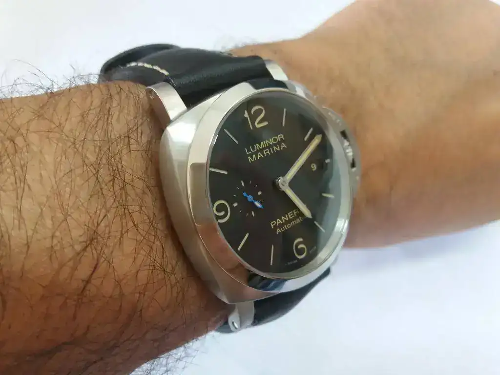 La primera impresión que tenemos cuando nos encontramos con un Panerai es la originalidad de su diseño, lo que lo hace distinto de cualquier otro reloj, por la forma de su caja, por el protector de la corona, por la esfera y sus numerales. Es un reloj completamente distinto de cualquier otro y no guarda ninguna similitud con otros relojes. Por lo que o gusta o no gusta, pero no a medias, sino copletamente. No pasa desapercibido y las miradas son continuas. A mi siempre me gustó y considero que es un “must have” en cualquier caja que se precie, y por fin lo tengo después de ahorrar bastante y mucho dudar sobre que modelo escoger creo que he escogido el que más se adapta a mi gusto y necesidades. El movimiento automatico y la fecha fueron condicionantes a la hora de decidir, y esos condicionantes me fueron encaminando hacia el PAM 1312.