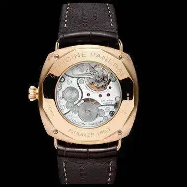 Movimiento: mecánico de cuerda manual, calibre Panerai P.999/1, íntegramente realizado por Panerai, 12 líneas, 3 mm de espesor, 19 rubíes, volante Glucydur®, 21.600 alternancias/hora. Dispositivo antichoque Incabloc®. Reserva de marcha de 60 horas. Número de componentes: 144.