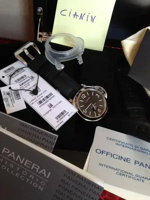 Saco a la venta Panerai 000 Logo, ya que no me veo con el (demasiado grande),comprado a finales de diciembre del 2013, el reloj esta sin estrenar,viene y como es evidente con toda su dotación completa, caja exterior de cartónclara, caja de cartón negra, libritos, pegatinas ........etc.