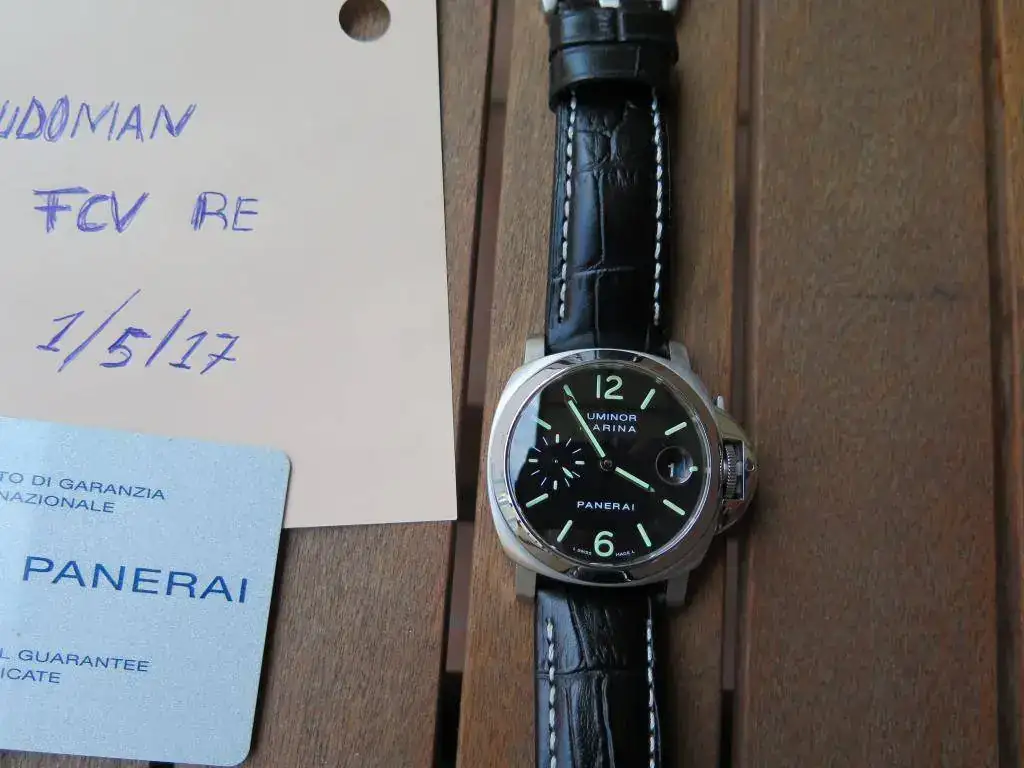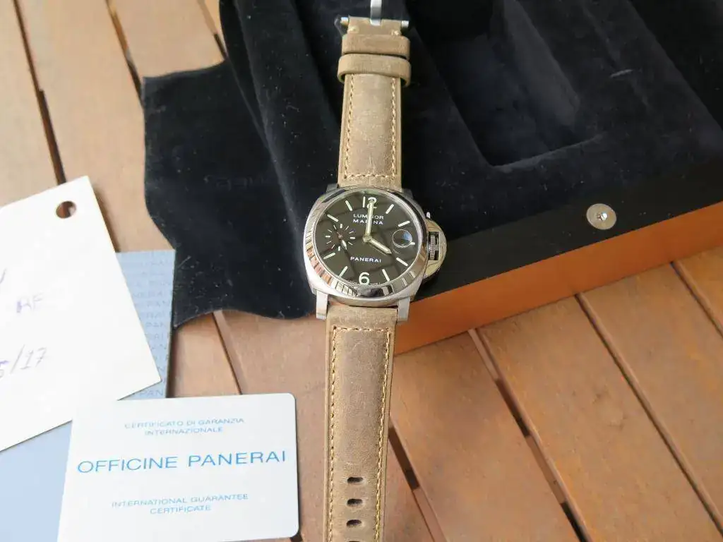 Pongo a la venta este Pam 048 comprado a un reputado mercante del foro en el 2016, revisado y en garantía hasta el 20 de julio de 2017. Su estado de marcha es perfecto, no llega a -1s/día. El reloj viene con su caja y documentación original incluida la tarjeta de garantía Panerai (caducada) y la tarjeta de garantía del mercante. Viene con su correa original y deployante Panerai, estando la correa original de cuero al final de su vida útil, motivo por el cual incluyo 2 correas no originales. Una negra con 3 puestas y otra beige nueva que es la que he estado usando (en su día me llegaron dos iguales). Como se puede ver en las fotos el reloj esta en muy buen estado, sólo destacar una pequeña marca en la caja a las 5 horas y que he intentado resaltar al máximo en las fotos.