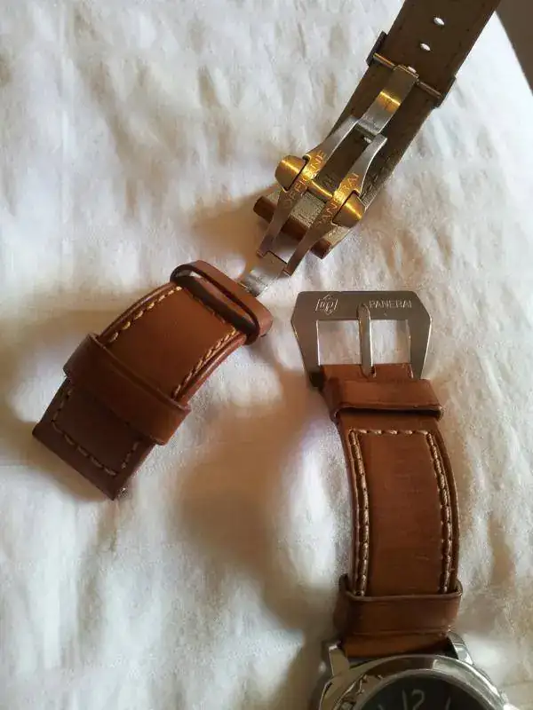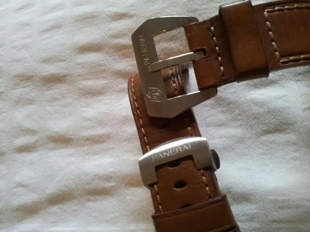 - Correa original Panerai cosida a mano con hebilla cosida gran tamaño al 90%.