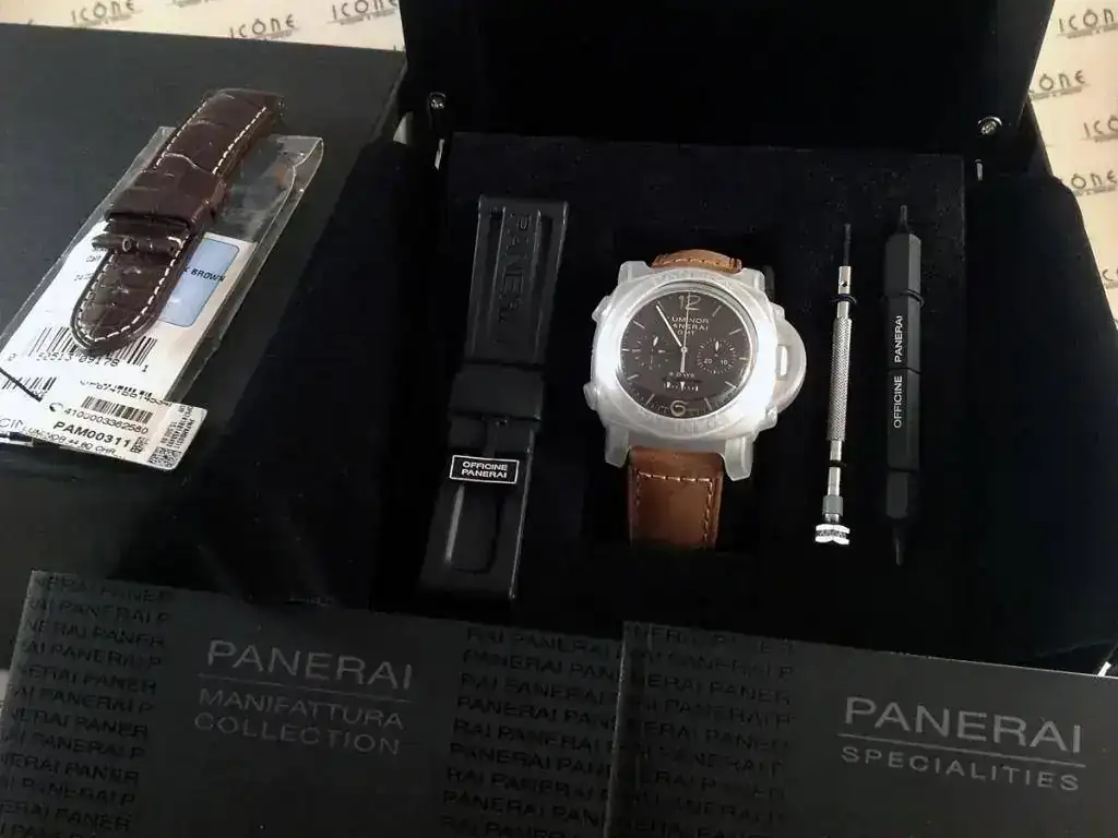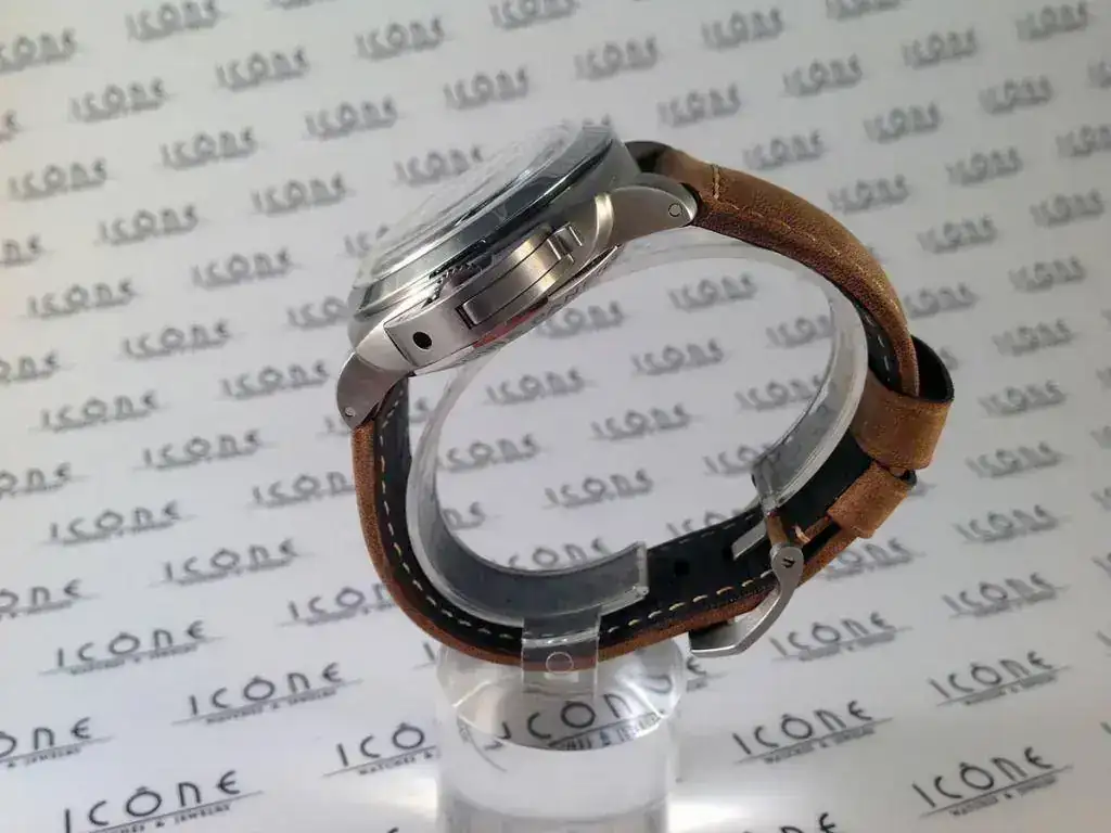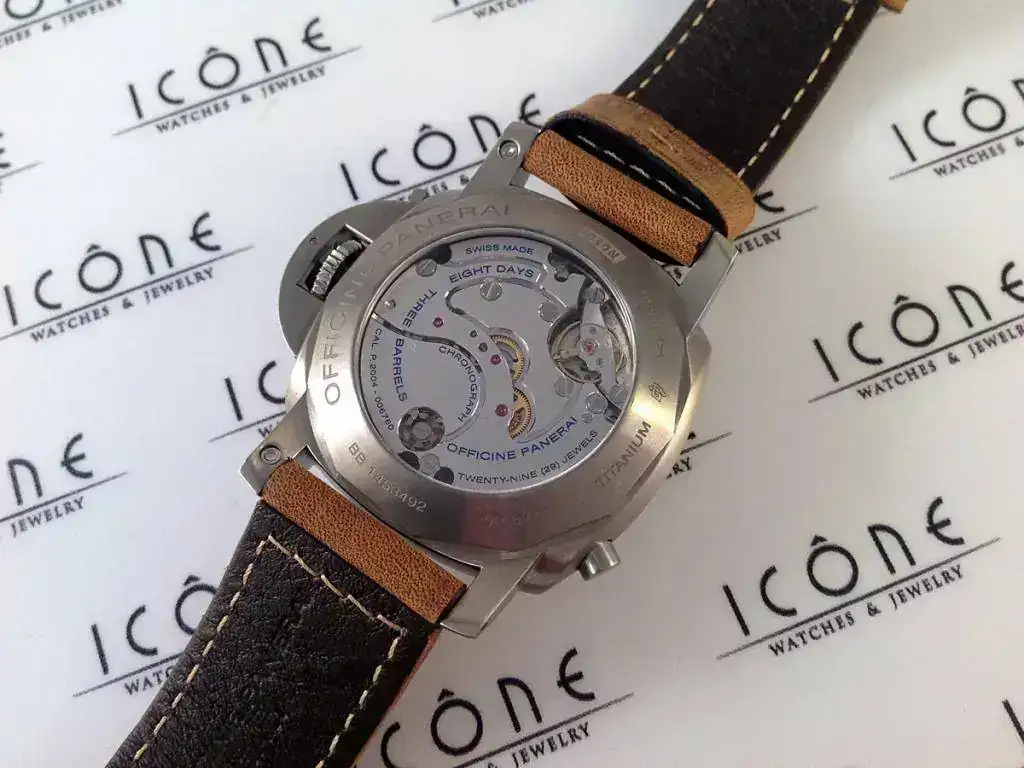 Las características son: Reloj automático con caja de titanio de 44mm., cristal de zafiro, calibre Panerai P2004/1, sumergible a 100m.