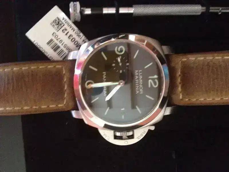Pongo a la venta un Panerai 312 serie L. El reloj esta en perfecto estado excepto una pequeña 'muesca'' en el bisel sobre las 2 AM. He procurado sacarlo en la foto para que podais verlo.