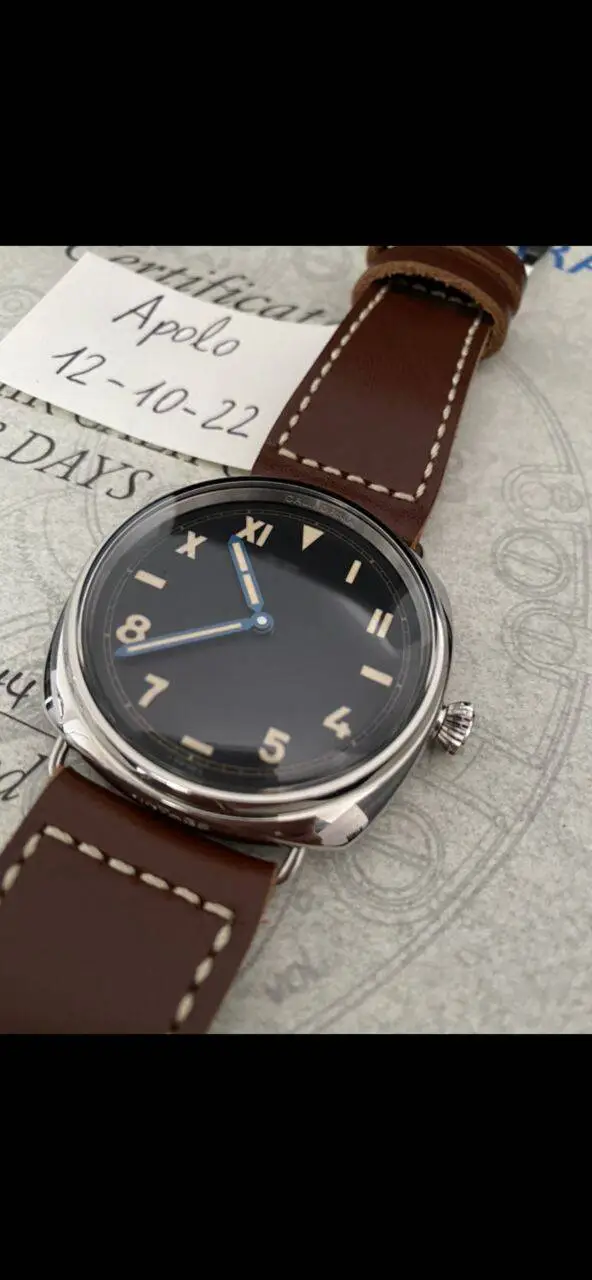Movimiento mecánico de cuerda manual realizado íntegramente por Panerai y reserva de marcha de 3 días