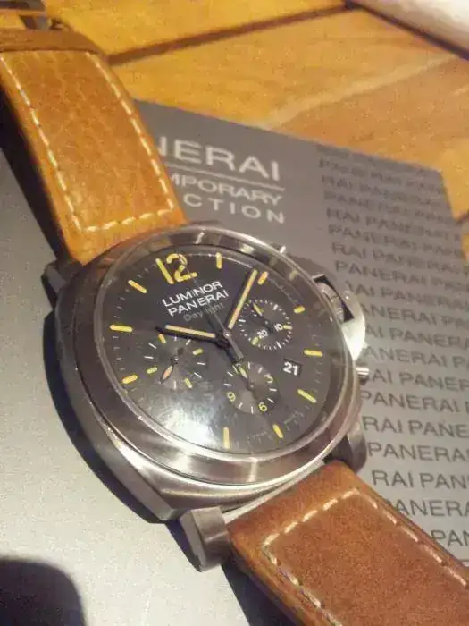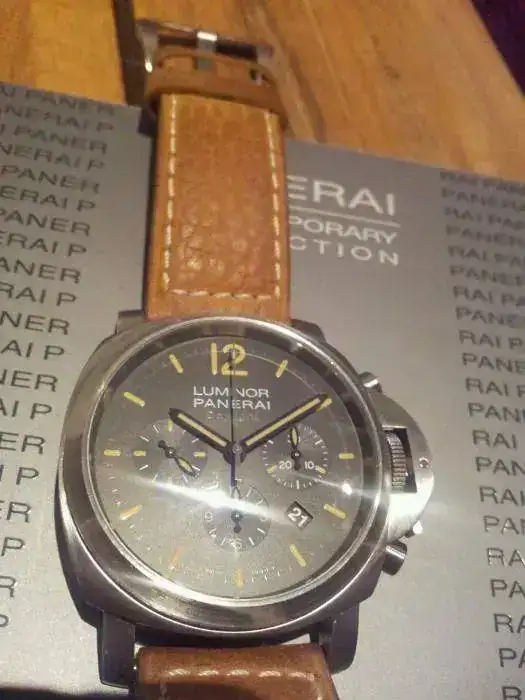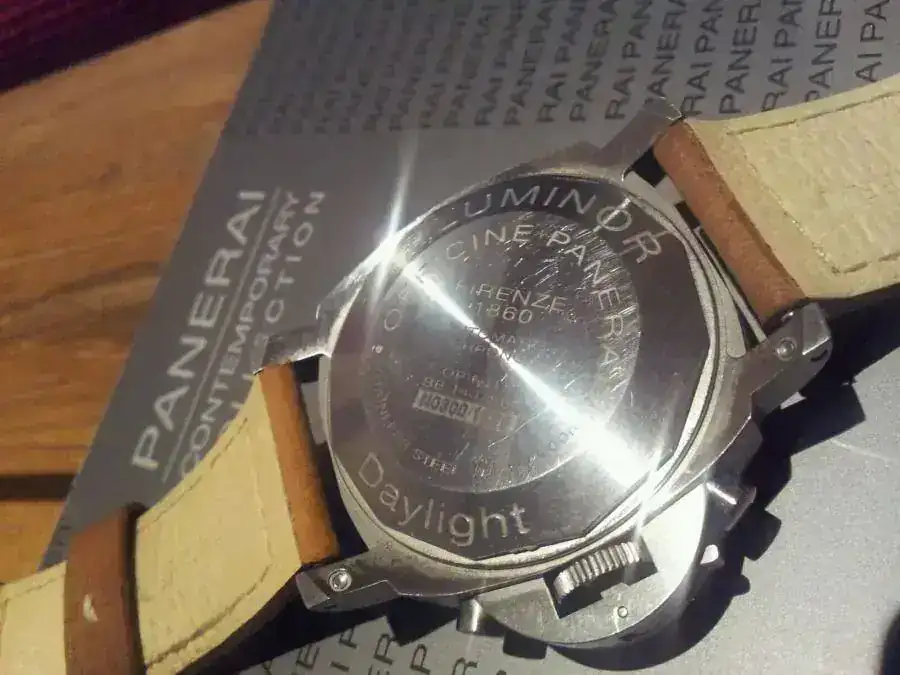 El reloj es de caja luminor con 44mm y con unos índices tostados en el mismo tono que la correa de piel. Es automático y en su año solo hicieron 1500 unidades de este crono emblemático.