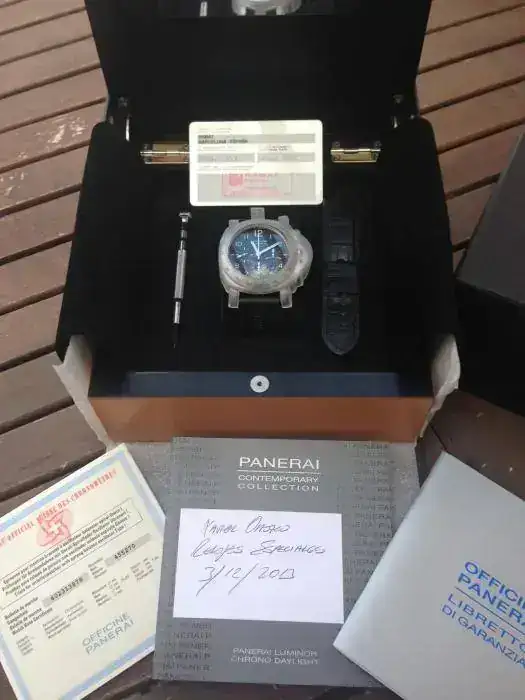 Vendo esta super pieza, un Pan Dayligth 196 de 44mm sin contar corona y protector, es un reloj de julio del 2008, comprado en Rabat Barcelona, tiene su set completo 100%, el estado como se puede ver es completamente impecable, marcha perfecto.