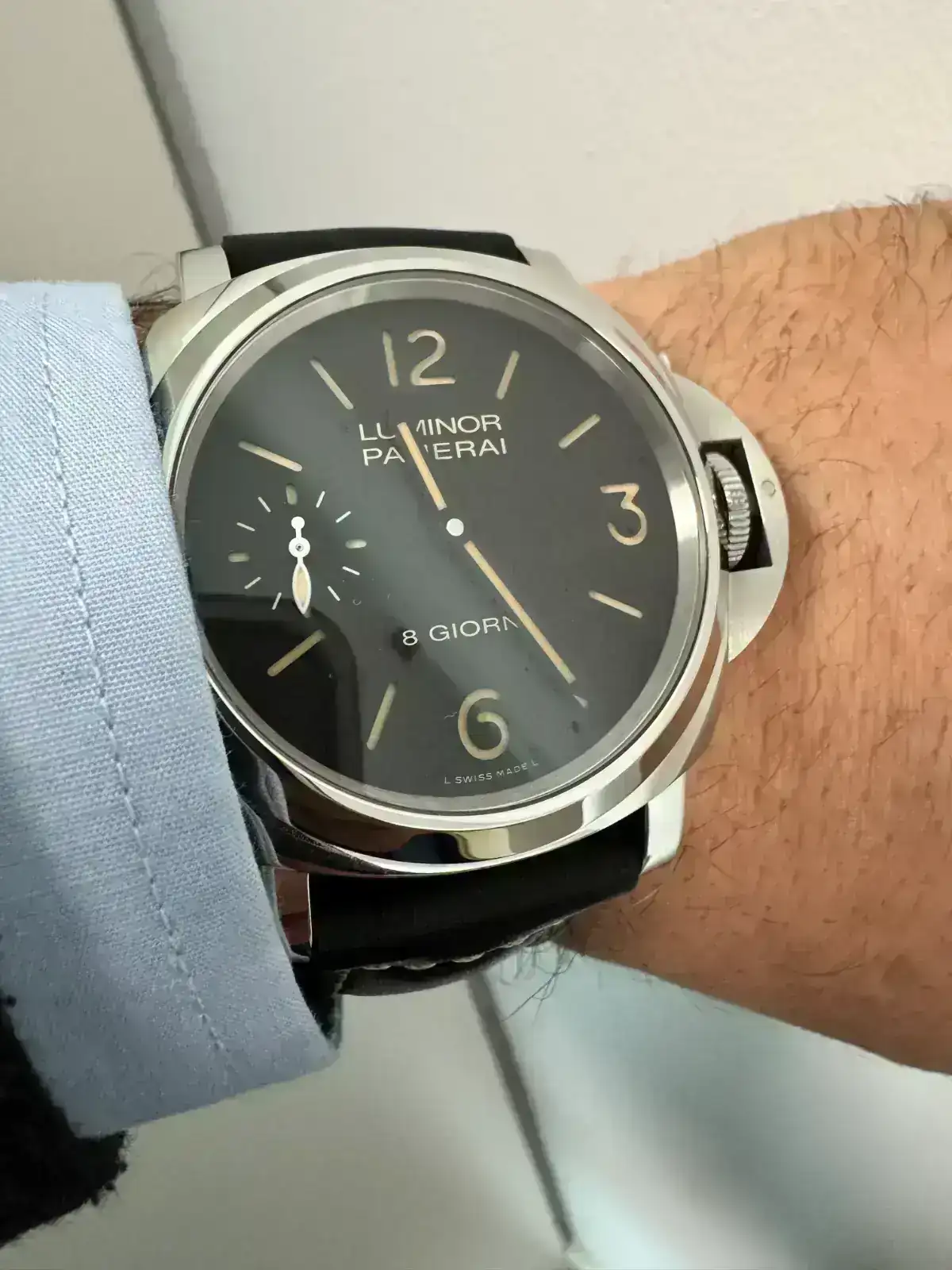 Pongo a la venta este precioso reloj con muchas dudas, pero ha entrado un nuevo reloj a la colección y tiene que salir otro. El reloj es practicamente nuevo, de hecho está comprado el 22/10/2024, por lo que tiene apenas 6 meses, por lo que su estado es casi de reestreno. Su garantía está ampliada hasta octubre de 2032. El reloj es una preciosidad y su movimiento manual con ocho días de reserva de marcha (son casi diez) es una autentica maravilla, da gusto darle cuerda y es puro ADN Panerai. Está completo de caja y documentación y con la correa de caucho extra sin estrenar. El precio que le pongo creo que es mas que ajustado teniendo en cuenta que es un reloj prácticamente nuevo. 4700 euros con envío incluido a península.