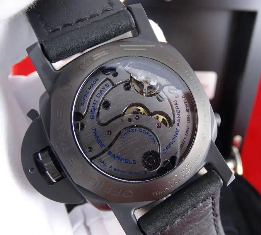 En el día de hoy ofrecemos una pieza muy especial, un Panerai construido en una excepcional caja cerámica, modelo luminor 1950 que se adapta extraordinariamente bien a la muñeca debido a su tamaño de 44mm. El calibre manual con una reserva de marcha de 8 días con indicador lineal es una delicia con modulo crono monopulsante. El calibre se puede ver gracias al zafiro oscurecido en negro.