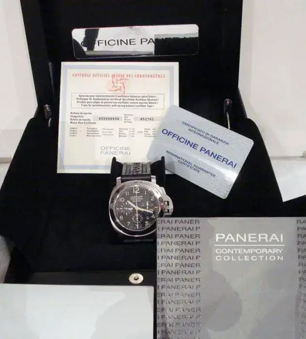 Observaciones : Chronografo Panerai con fecha entre las 4 y las 5, bisel con taquimetro, sumergible 100 metros, cristal de zafiro