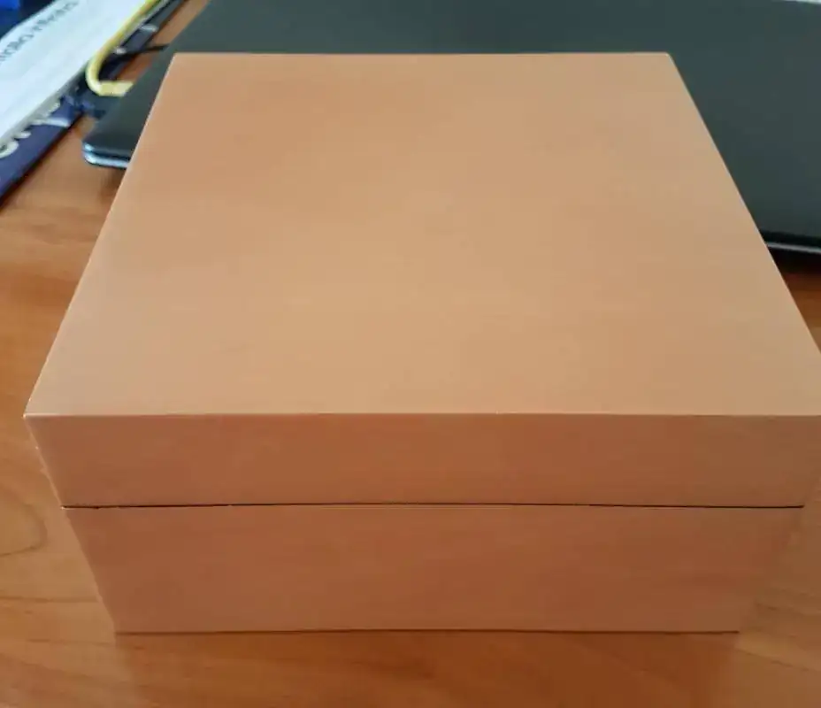 Incluye el kit completo: Caja de cartón negro, caja de madera de peral, papeles (Certificado COSC, tarjeta de garantía, manual y librito de la serie histórica), destornillador para el cambio de correas, protector de silicona, y sus dos correas de serie, la marrón de becerro, en bastante buen estado, y la de caucho, usada en pocas ocasiones.