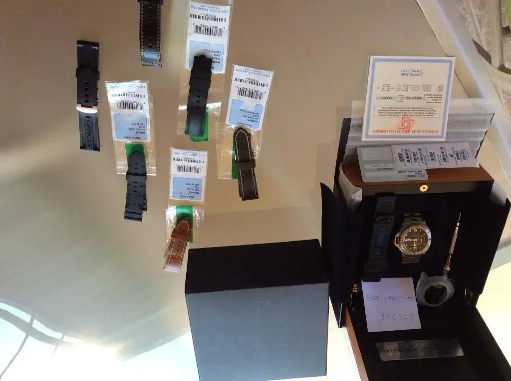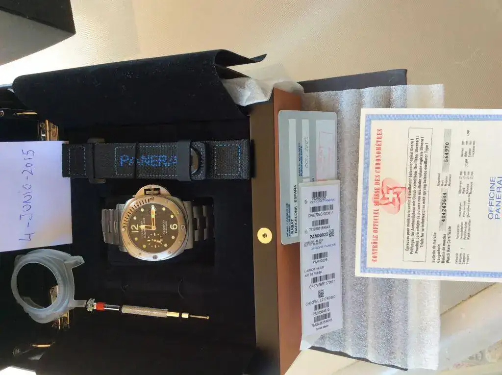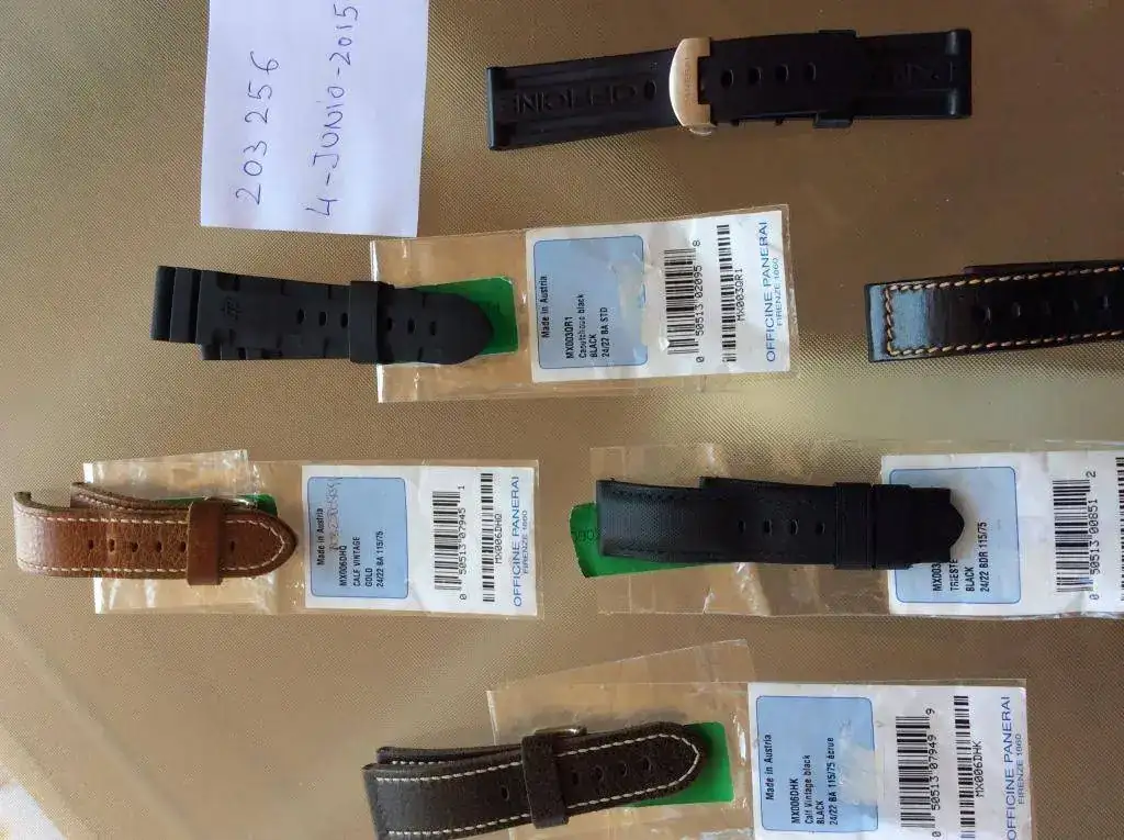 Pues cambio mi PAM 25. El reloj viene con un armis OEM de Titanio comprado en la boutique del ECI y con las dos correas de caucho con deployante y de buceo de dotación de serie. Ademas incluyo 5 correas mas, dos OEM vintage, la de caucho OEM acordeón, la Trieste para deploraste y una Manufactura Firenze (los arrimones que llevan algunas en la foto no se incluyen). El armis y el reloj tienen los arañazos propios de uso normal sobre todo en la parte del armis que hace contacto con la mesa de trabajo (desk diving). Os he puesto todas las fotos posibles para que podáis verlo por vosotros mismos. Tiene un golpecito en la zona inferior de la caja, en el lado opuesto de la corona. En una de la fotos se ve bien.