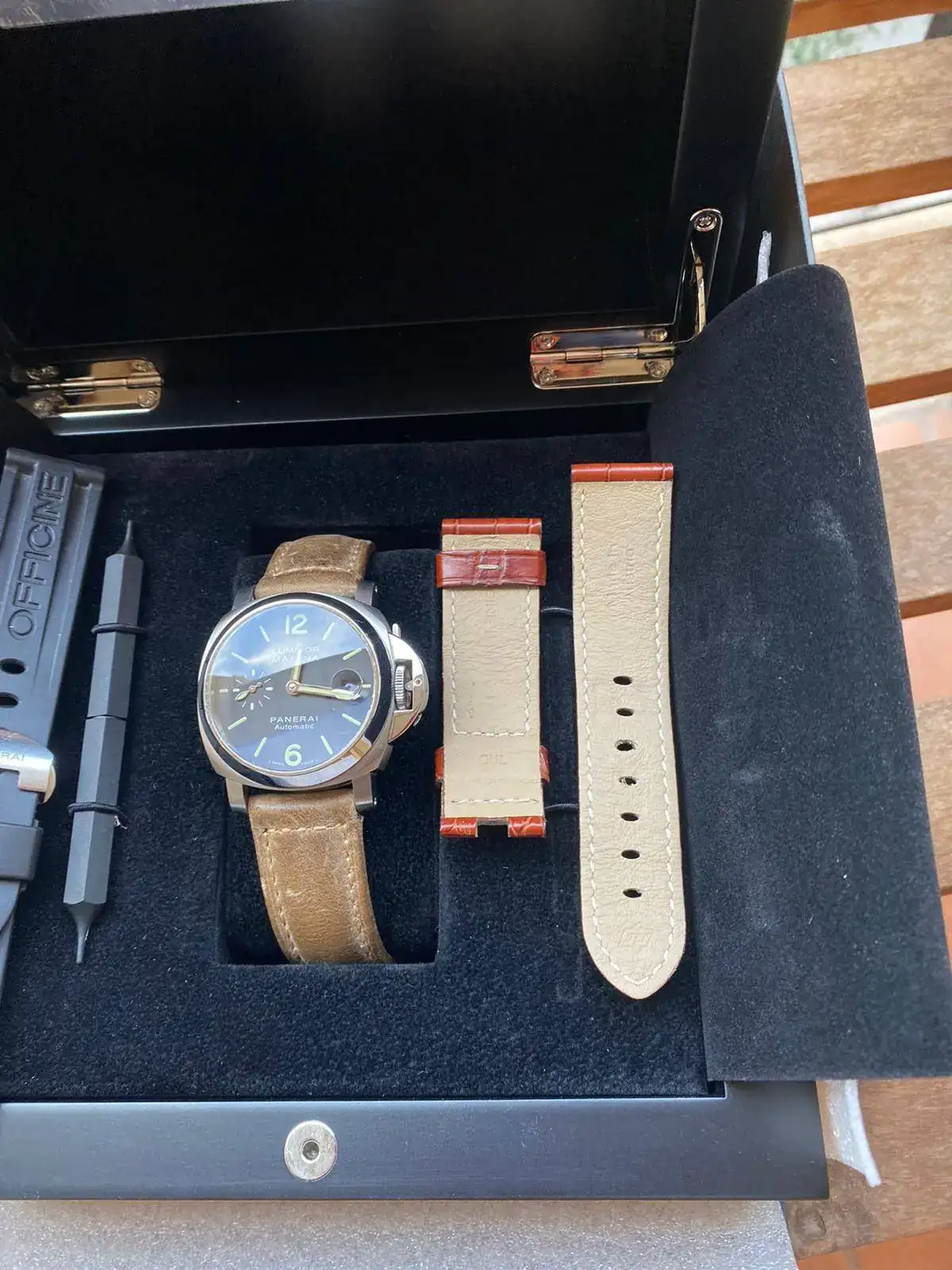 Saco este Panerai Pam 048 de 40mm, la mejor medida para muñecas de 16-18cm. Tenia dos relojes iguales, el primero que vendí hace tiempo en el foro, el cual usaba habitualmente y este que estaba nuevo. Como mucho me lo he puesto 8-10 veces desde que vendí el otro hace un tiempo. A las fotos me remito sobre su estado excepcional. No pongo reestreno porque para mi es cuando nunca me lo he puesto. El reloj viene completo de todo. La correa que lleva puesta esta usada al igual que la de caucho porque las usaba en el otro panerai que tuve, motivo por el cual tienen más puesta que el reloj. En cambio la correa de piel original con la que venia esta sin usar. El reloj lo envió a la oficina MRW más cercana al domicilio del comprador. No tengo inconveniente en enviar videos o más fotos a los interesados por privado. Por favor no me ofrezcáis cambios, el dinero ya esta invertido, gracias.