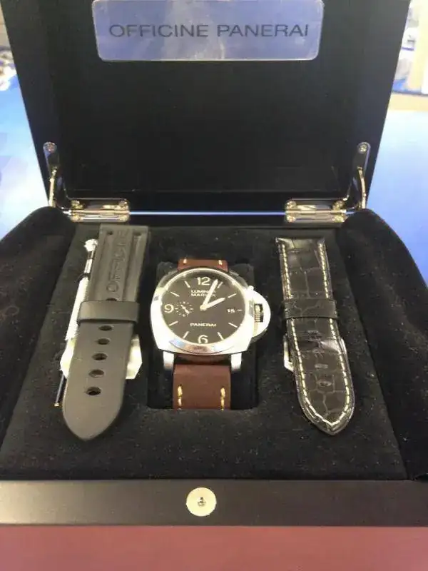 Con este quito de mi pequeña colección todos los Panerai que tenía, con lo que a la vez que el reloj, vendo todos los juegos de correas que tengo, ya que ahora no le daré uso y son hechas exclusivamente para esta caja.