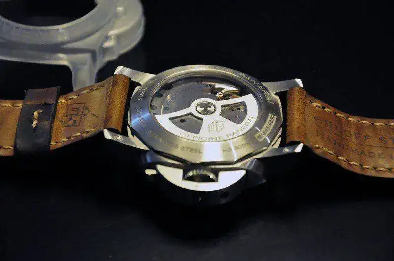 Movimiento: Automático, mecánico calibre manufactura Panerai P9000 con 72 horas reserva de marcha.