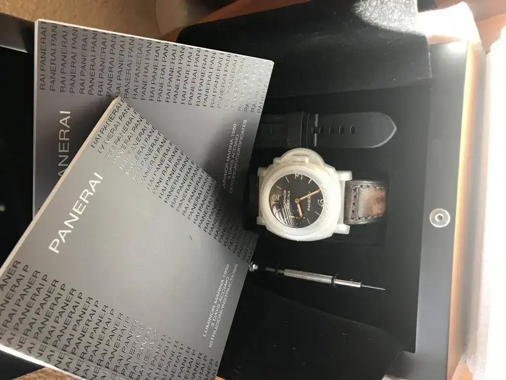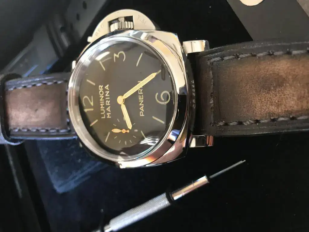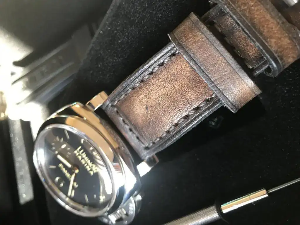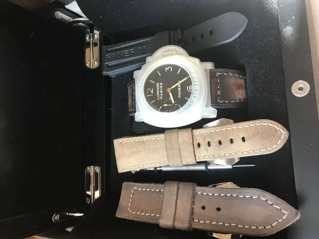 El reloj lleva toda su documentación, cajas, stikers, paño y se compañan de dos correas extras, set habitual, correras Asso Pam y correa de caucho, se incluye en el lote una correa Corrigia de mucha calidad con un precio alto y la que lleva actualmente puesta, una correa soberbia muy vintage artesana que creo que le queda muy bonita al reloj.