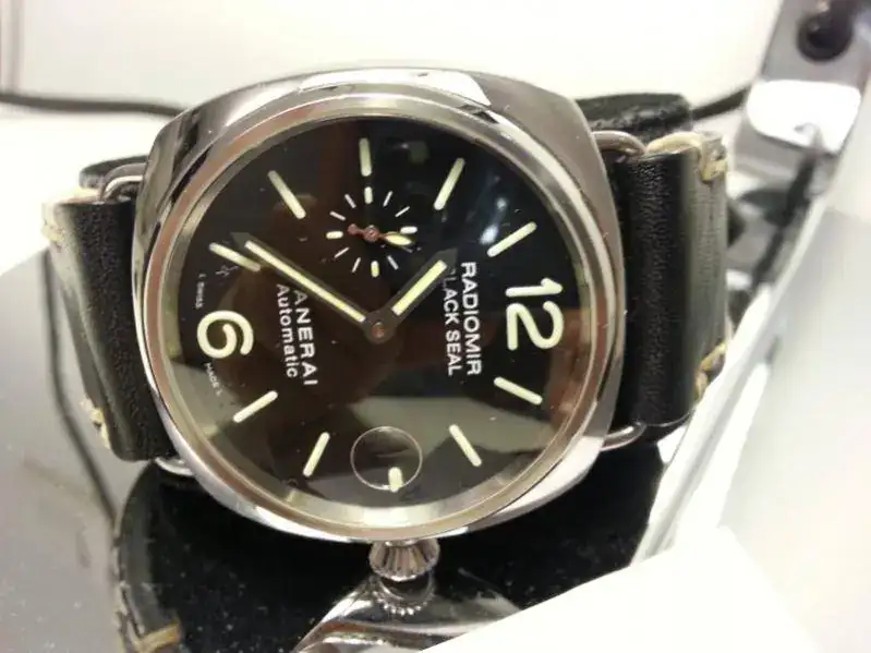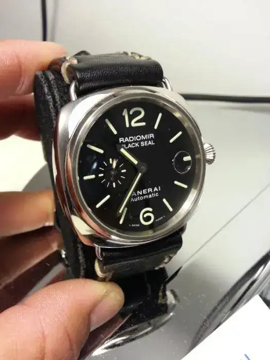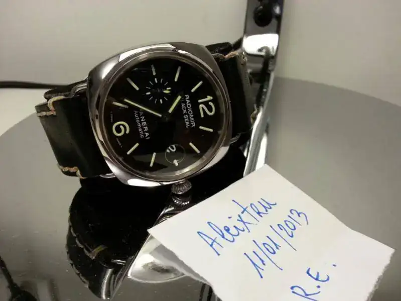 Se trata de un Radiomir con calibre automático de 45mm, en un excelente estado (en las fotos se aprecian motas de polvo), de la Serie K. Viene con toda la dotación y documentación, y además de la bonita correa que se ve en la foto, y creo que le queda genial, se adjunta otra correa original negra de coco, con su deployante. Las dos en excelente estado.