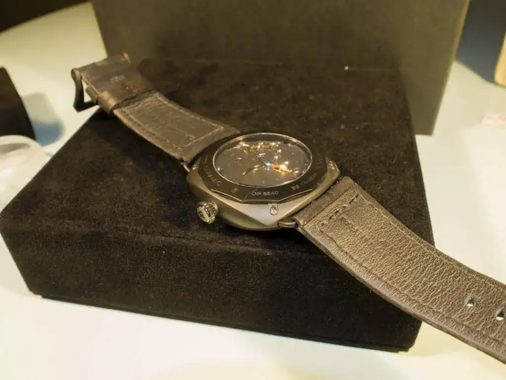 El reloj tiene un arañazo en la tapa trasera y un "descascarillón" en la caja a la altura de la inserción de una de las asas. Ambos defectos están ilustrados en detalle en las fotos adjuntas.