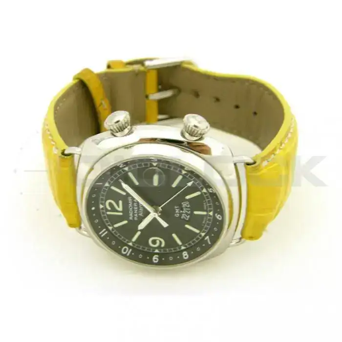 - Características: Cristal de zafiro, caja de acero, correa de cuero amarilla, hora, fecha, despertador, GMT, esfera negra con agujas e indicadores luminiscentes y números árabes, movimiento automático...