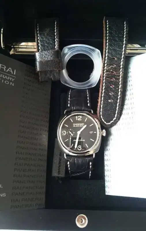 Vendo este precioso Radiomir 388 en un estado estético y de marcha impecable, típicos (pocos) pelillos en la caja al ser pulida, movimiento manufactura P 9000 con reserva de marcha de 3 días. Lo acompaño con una correa original Panerai Vintage y otra con gofrado de Aligator del maestro Guerrita, ambas casi a estrenar.