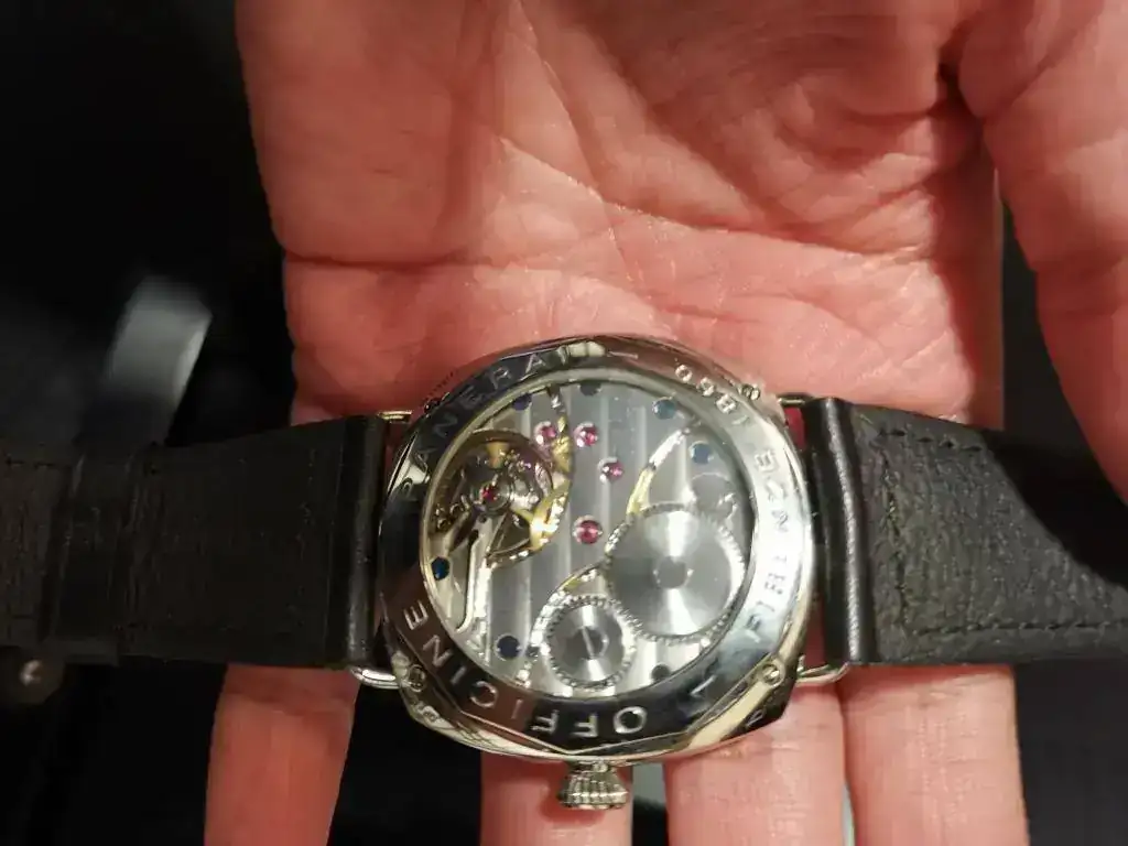 Le pongo un precio de 3300€ el reloj no pulido único destacar una marca en cristal de zafiro a las 13:00 obra de la mujer con el anillo que apenas se ve, lo de más perfecto.