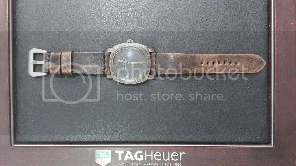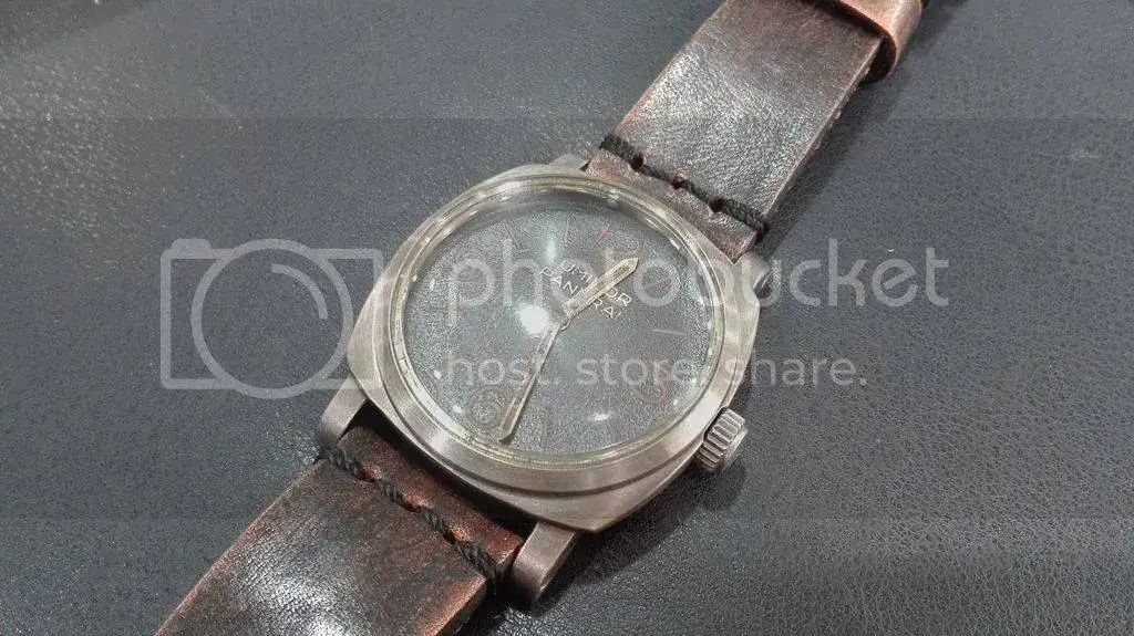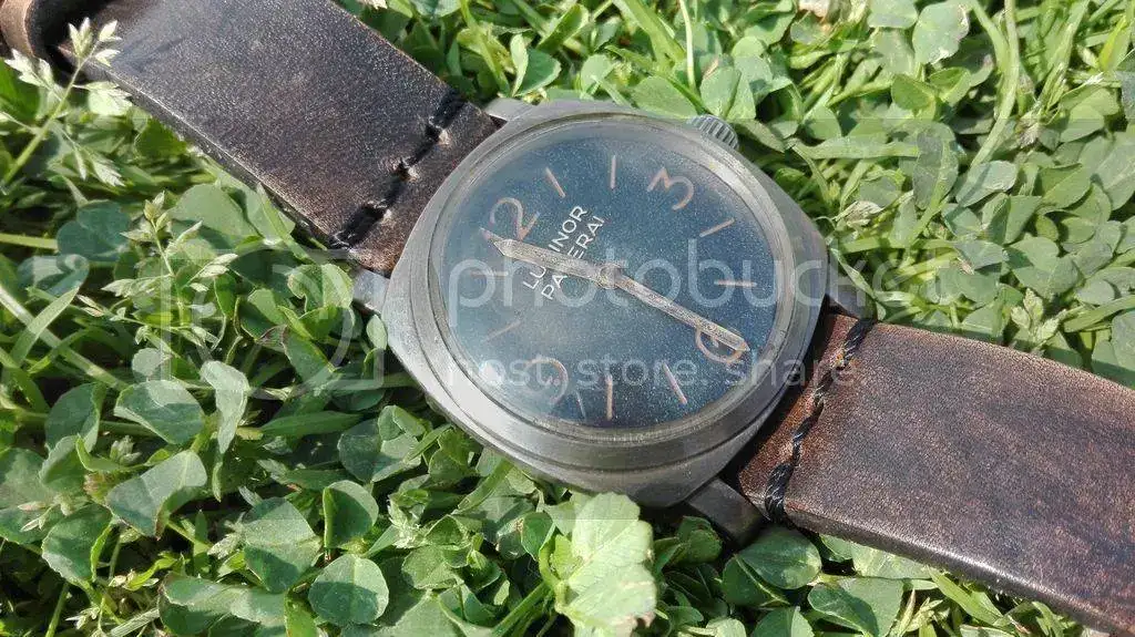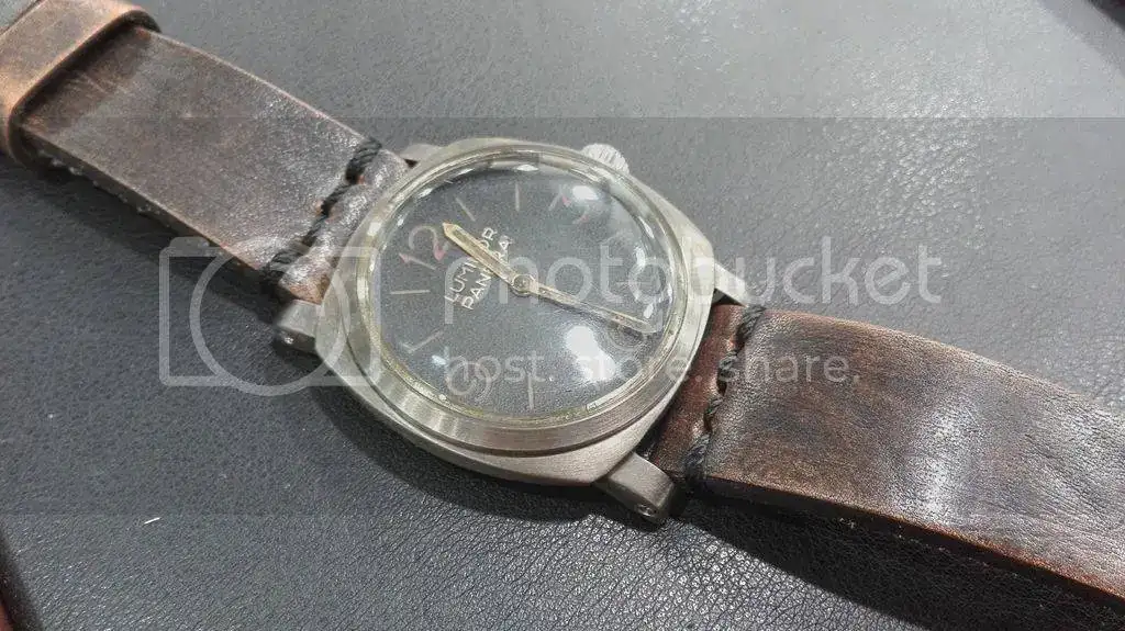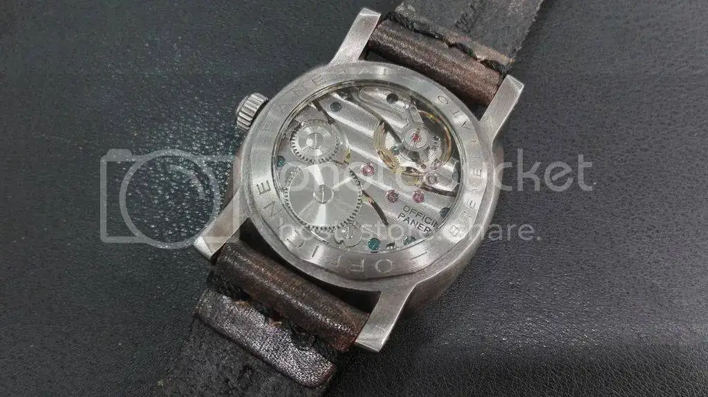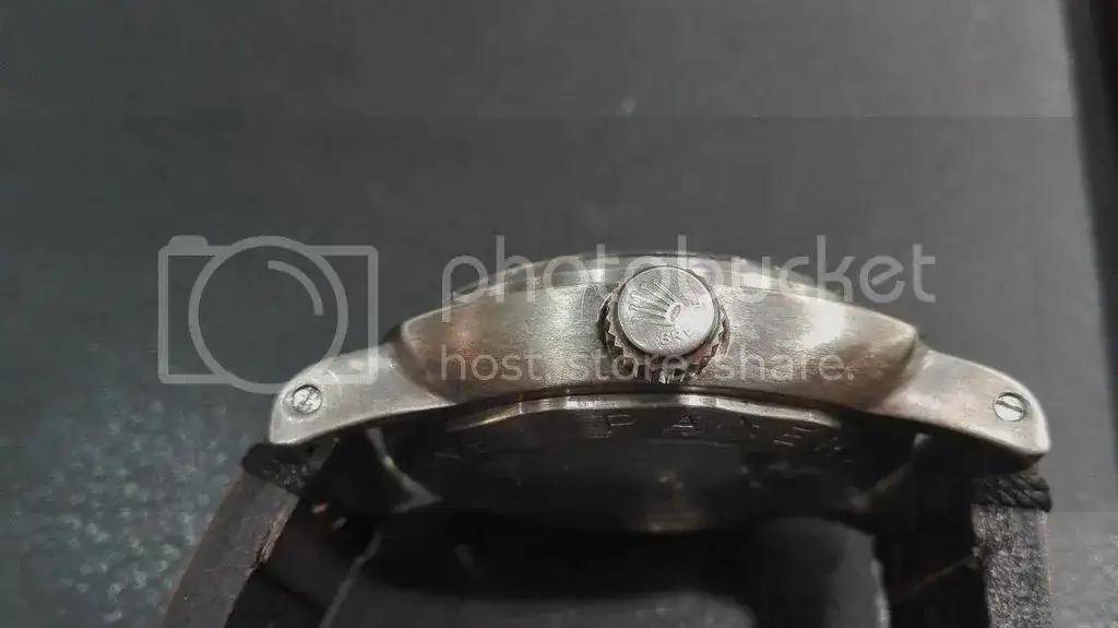 Buenos días a todos, hace cosa de 2 meses cayo en mis manos un panerai vintage, después de haberme estado informando en internet y llevar el reloj a 3 puntos de venta oficial de panerai sigo como el primer día, nadie me puede certificar que sea un fake, pero a su vez tampoco me certifican que sea auténtico, el reloj lleva corona rolex brevet pero su mecanismo no es rolex (como los mas antiguos), lleva una unitas 6497 de carga manual como las que usan modelos mas actuales, la esfera es una "luminor" pero la caja no lleva la asa típica de protección de corona, la caja del reloj es de un material que con unas pinzas de acero no la puedes rallar "frotando con una presión suficiente para rallar una caja de acero", también he llevado el reloj a 2 relojeros con mucha experiencia y mas de lo mismo, me dicen que es una pieza muy pero que muy rara, a ver si alguien de aquí conoce de un crack en temas panerai y me puede orientar mejor, os dejo fotos del reloj, la correa se la puse nada mas comprar el reloj y le cambié el cristal trasero "era de plástico" por uno de zafiro, todo lo demás esta tal cual lo compré.