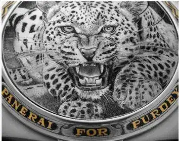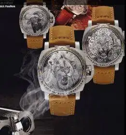 Todos los relojes fueron magistralmente grabados con animales en la tapa que cubre y protege el cristal. Concretamente, la temática se centra en los conocidos como los cinco grandes africanos, que son león, leopardo, elefante, rinoceronte y búfalo, que constituyen las especies más salvajes y cotizadas para los cazadores.
