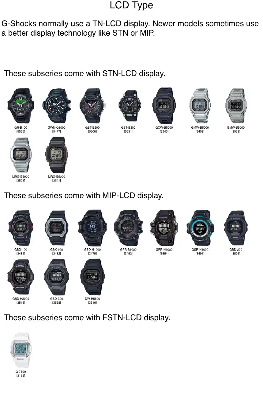 Es una pregunta: veo que se habla de los diferentes tipos de pantallas de Casio, podria alguien resumirme brevemente que clases de pantalla existen y por qué algunas referencias parece que llevan mejor pantalla que otras? (Pantalla "negativa" etc)