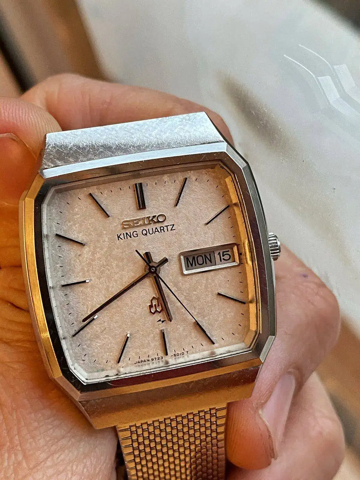 Un King Twin quartz del 79 cuadrado y con una esfera preciosa. No tengo fotos que le hagan justicia. Es como si fuera un papel de seda texturizado.