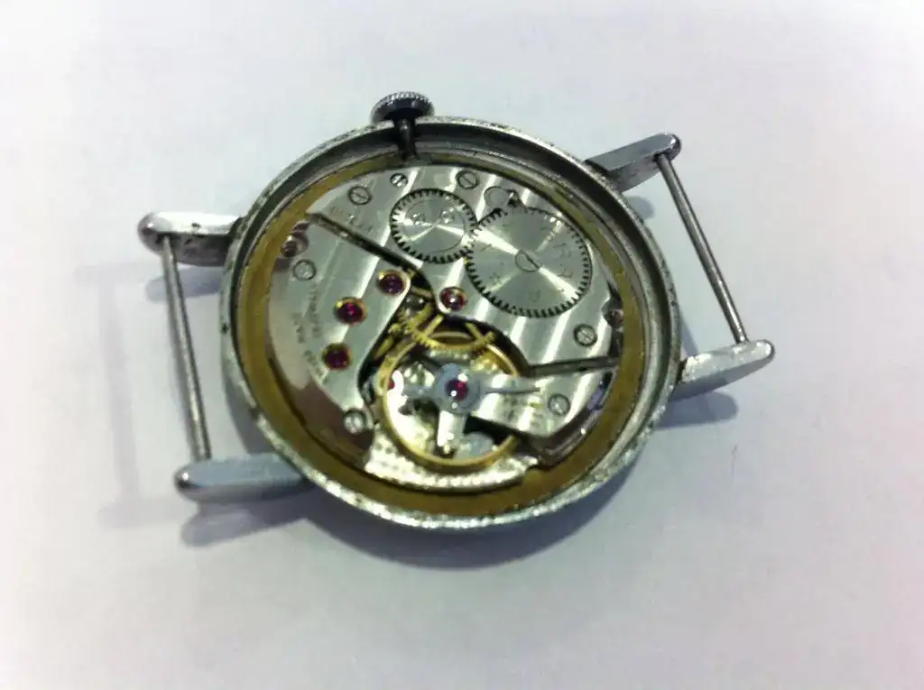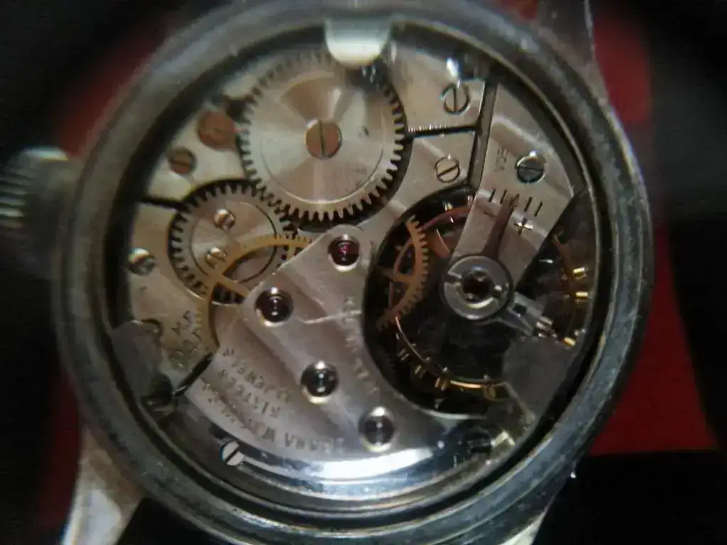 El movimiento aún en las mejores condiciones, y la esfera con signos de envejecimiento, pero sin corrosión, demuestran la eficiencia del diseño de la caja.Precisamente, este diseño se publicó el 28/02/1955 como patente suiza nº 305467 de Roamer Watch Co., aproximadamente 10 años después de que este reloj abandonara la fábrica. Y, de hecho, este caso, que se puede abrir sin herramienta y no necesita junta (excepto la corona), es el sueño del relojero.[/TD]