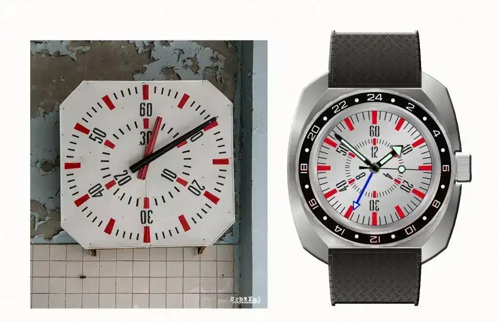 Es un reloj basado en un reloj "fallecido" o abandonado en Prypiat. El foro donde lo he visto es Comando rojo. Recientemente pregunté por este proyecto en ese foro, que me parecía interesante, y nadie me contestó, aunque fuese simplemente para decirme que por el momento estaba parado. Es una lástima porque creo que tiene salida inmediata incluso a efectos de aficionados extranjeros.