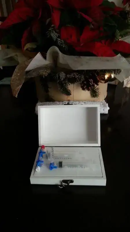 Estos días he realizado la versión definitiva. Sus premisas eran: bajo coste y efectividad. Así que compré en los chinos una caja de 3,5 e, reciclé una pintura acrílica para que mi MDD no se quejara de olores ni manchas, el peso que fija la caja durante el llenado es otra madera reciclada. Varias manos con lija adecuada y fijación del sistéma "tintahidráulico" en la base. Mantengo sólo dos jeringas. Permite dos tipos de tinta o limpiar el circuito al acabar. Como ya ilustré su funcionamiento no me extiendo.