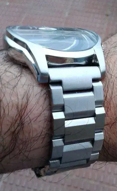 Respecto a la milanesa ...perdóname @aaron84 , pero a mi no me gusta en general cómo quedan las finas y aún menos con este reloj que, pese a ser un cuarzo, tiene un grosor más que apreciable y las asas y el cristal curvados.