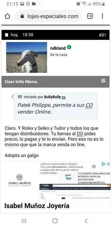 Bajo mi punto de vista la venta y sobre todo en relojería es aduladora y para eso se necesita la atención presencial.