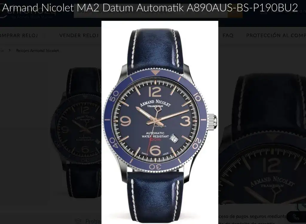 la cuestión es que es curiosamente parecido al modelo que compré de Armand nicolet ( si bien el mío tiene los números en color blanco ) también existe un modelo con los números en dorado, que aquí podéis ver: